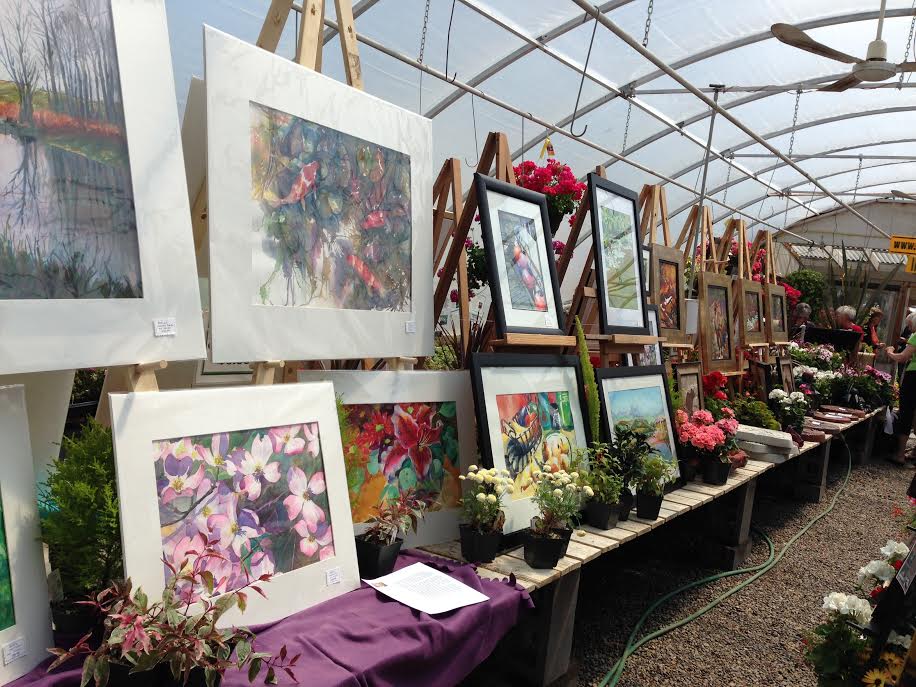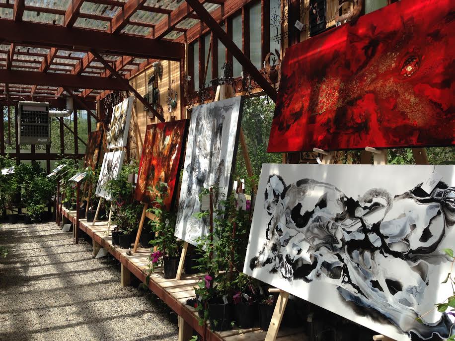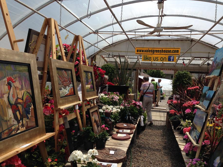 Vale’s Greenhouse in Black Diamond is hosting “Cultivation of Art” this weekend. As the season for purchasing annual plants wraps up, Vales is opening its greenhouses for local artists to display their creations. I think they look fantastic amongst the greenery. What an inspired idea.