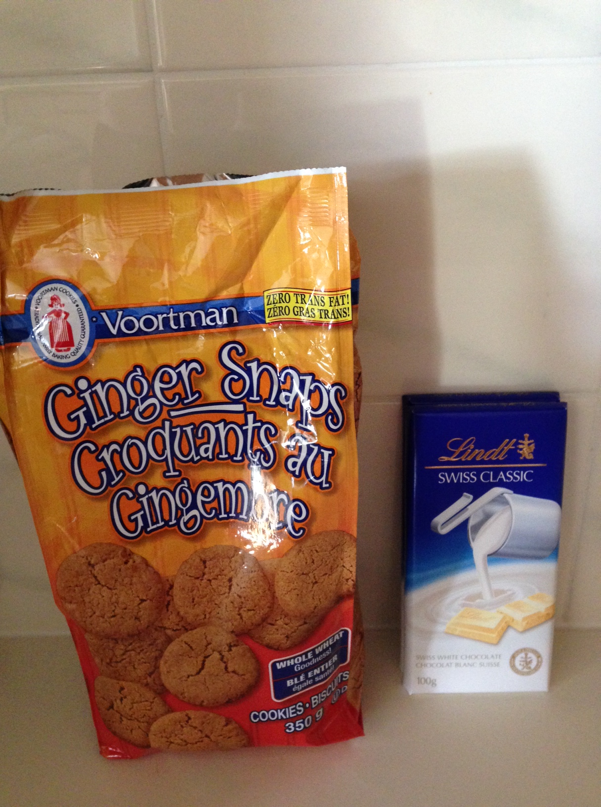 When my younger daughter was in France this year, she found a Belgian chocolate bar that she loved AND could eat. Galak Speculoos. White chocolate with chunks of Dutch Speculoos. As someone who cannot eat regular brown chocolate, she was thrilled that this packed a lot of flavour. I tried to find this bar in European grocers around Calgary, but was unable to locate it. So…I decided to make something similar. At Christmas I will buy a couple bags of Speculoos for future use, but for this batch I used gingerbread cookies. They turned out to be quite fine.