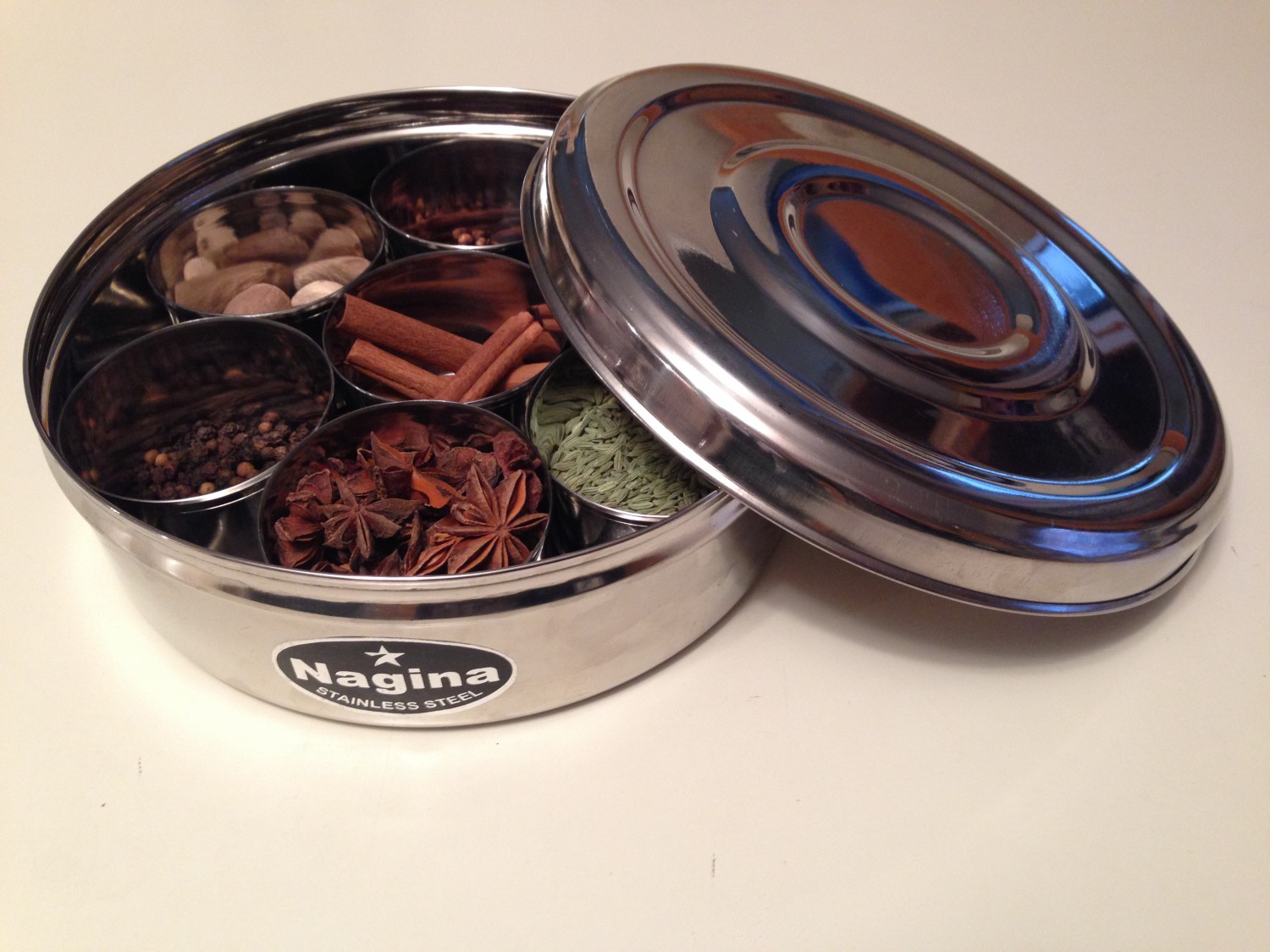 My husband bought this spice tin for me a few years ago. I keep my chai/mulling spices in it. It is a little jolt of pleasure each time I open it, as I see all the beautiful shapes and colours, and am enveloped in a cloud of fragrance. So nice.