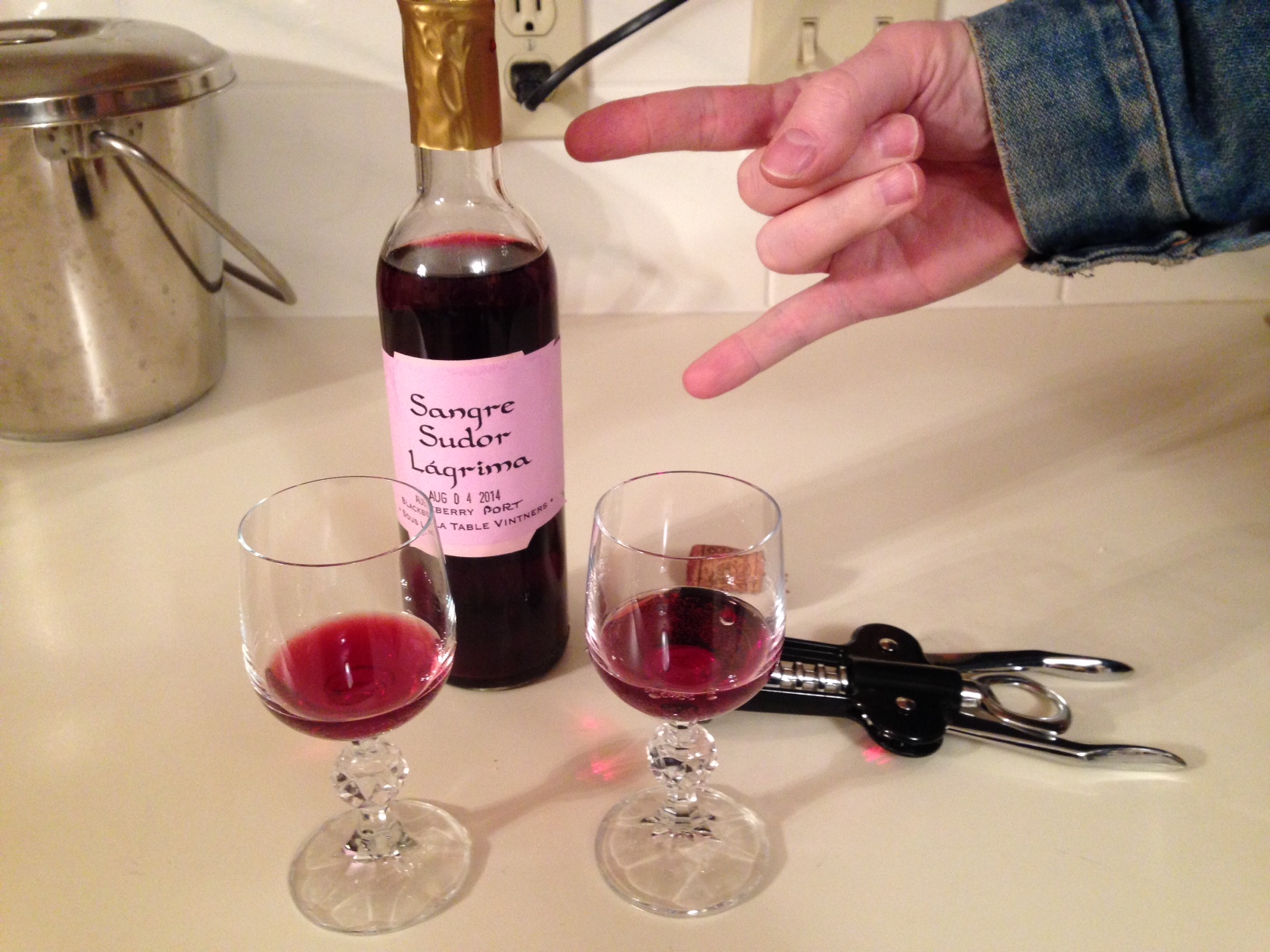 My husband’s sister and brother-in-law make a variety of alcohols at home. They recently completed a blackberry port and gave us a bottle with instructions to let it sit a couple months. Last week we got a call saying “open it outside, quickly, ours re-fermented and blew the corks! On the upside, it is delicious.” I took a photo to show that my husband escaped the opening with all this fingers intact 🙂