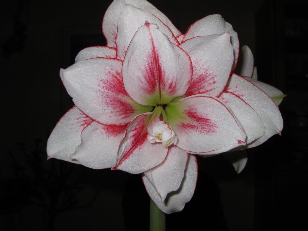 The bulbs often come in a kit with soil, pot and bulb. I save the pots for spring use as I find they are too light for the weight of the top heavy flower. Instead, I use nice clay pottery to give a solid weight on bottom so the plant does not tip over. Planting is a snap. Wet the soil and cover 2/3 of the bulb with the soil. Keep moist so roots can form. Within the month, the stem will begin to shoot up and then things happen quickly. The stalk gets to be 2-3 feet tall, and each stalk supports 3-5 flowers. This year, my bulb has its shoot already showing. I will post other photos when it begins to bloom.