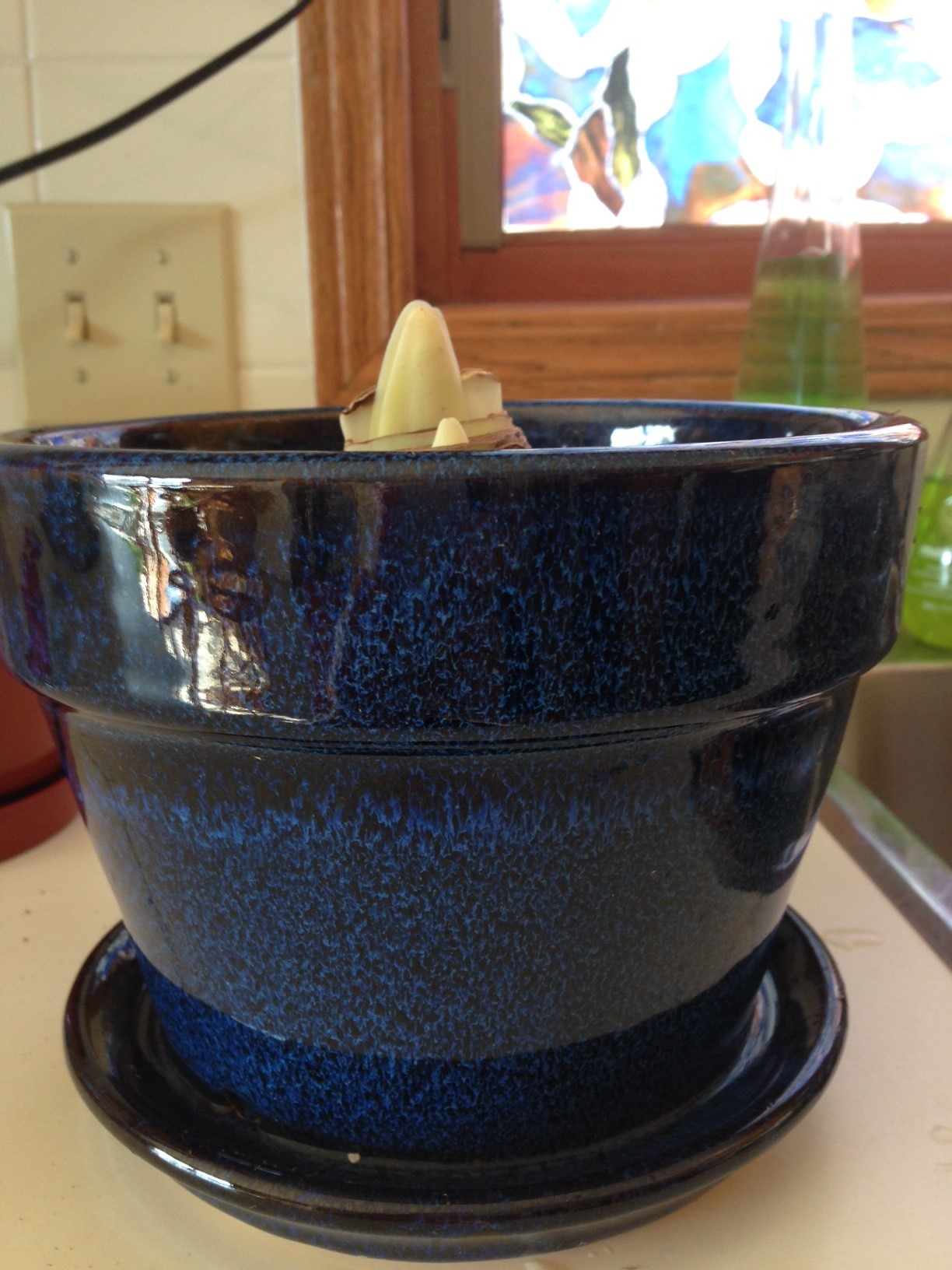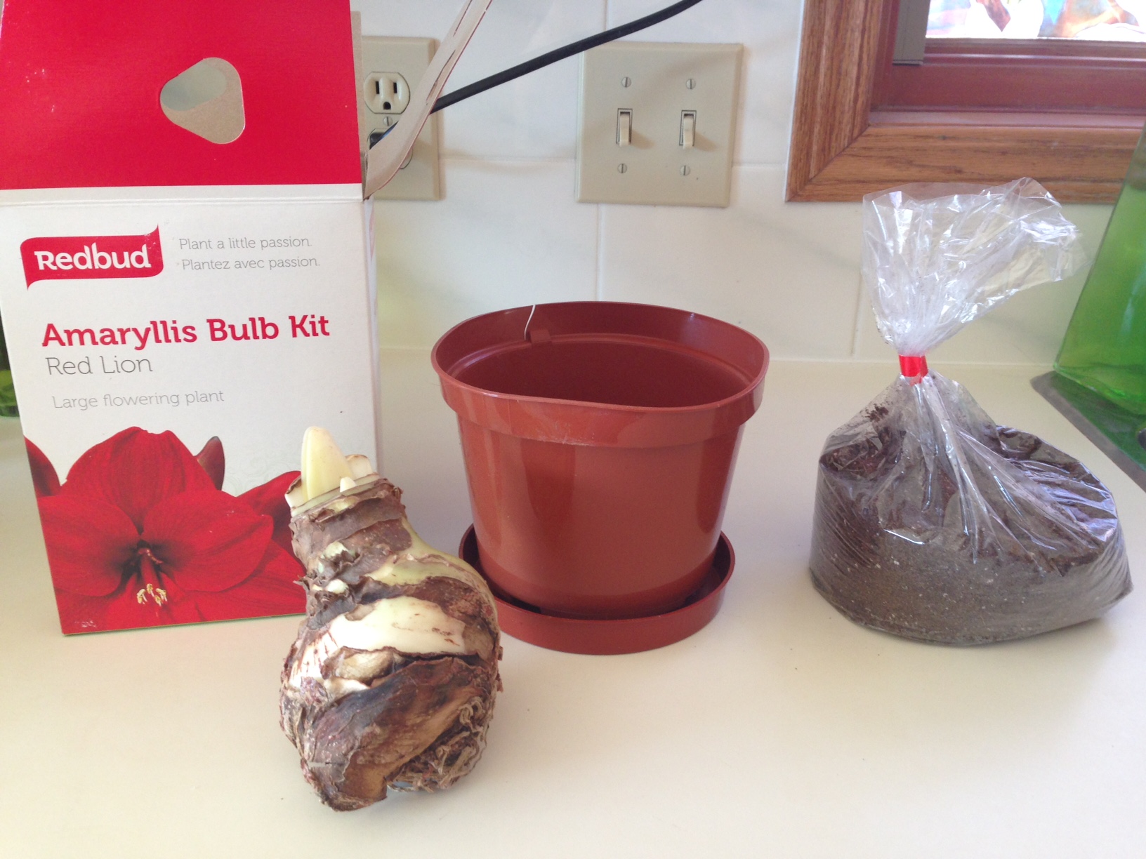 My daughter bought a red amaryllis bulb for me we planted it today 🙂