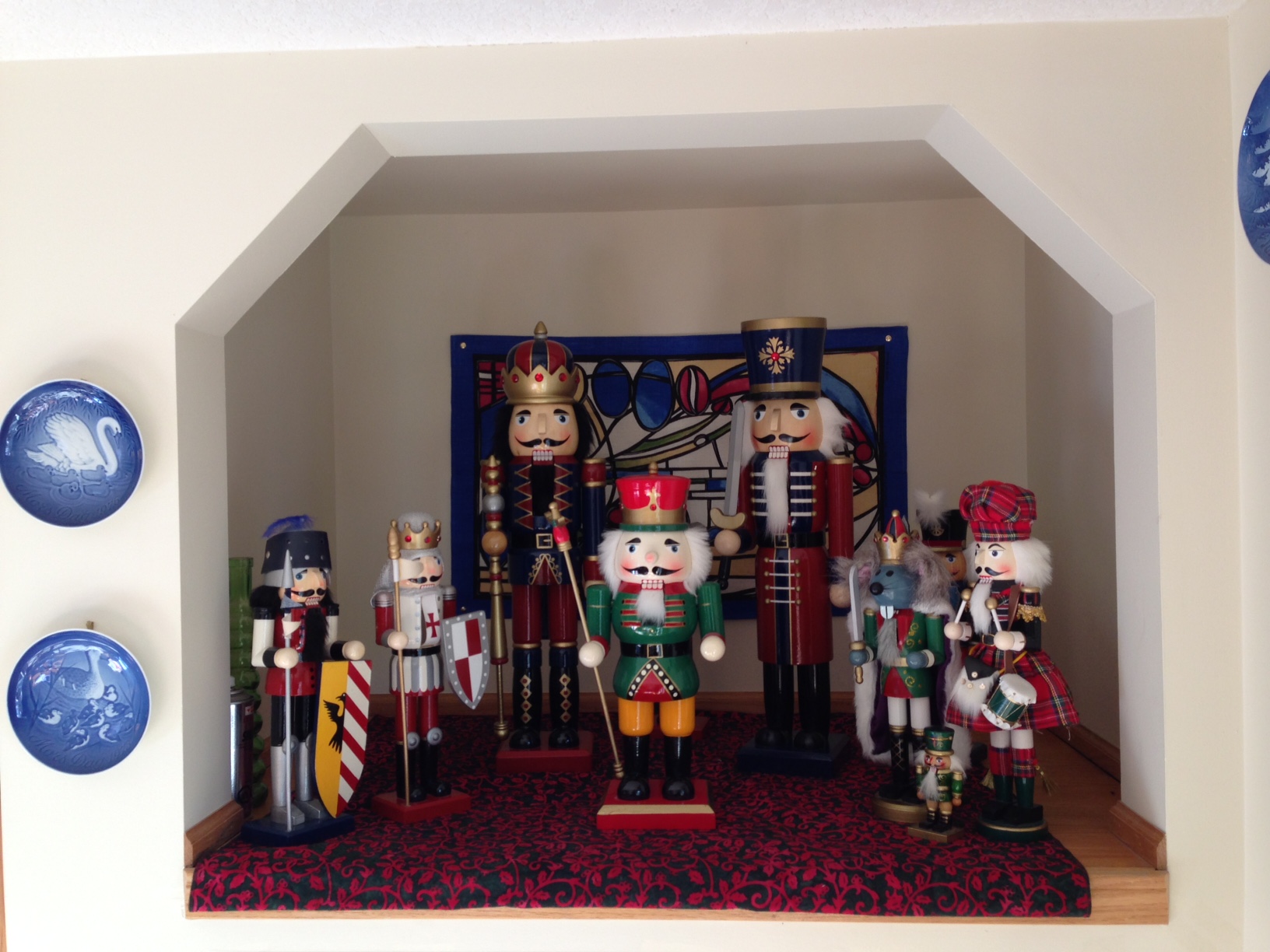 We have a nook in the kitchen that contained a large fish tank when we originally viewed the house. Not wanting a fish tank or TV (its original function) in the kitchen, I have tried various schemes to make it interesting, but at Christmas, it is an easy choice – my nutcracker collection! Counting down!