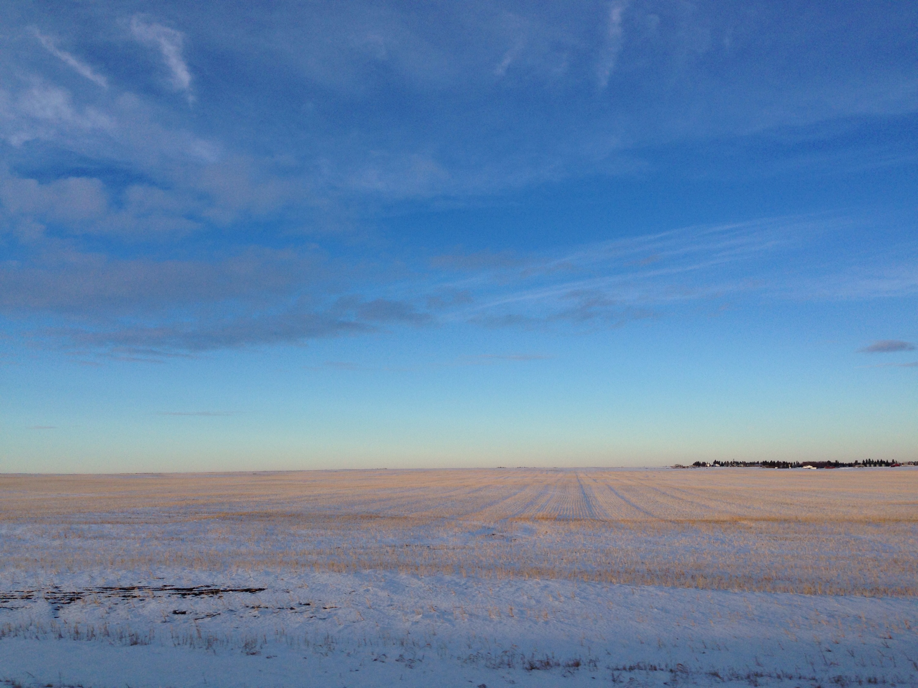I have always loved the soft yellow of grasses and grains against the backdrop of the big, blue sky spanning the horizon. Add some snow or clouds and I think it is even more beautiful. Some people think it gets monotonous, but I never tire of the view.