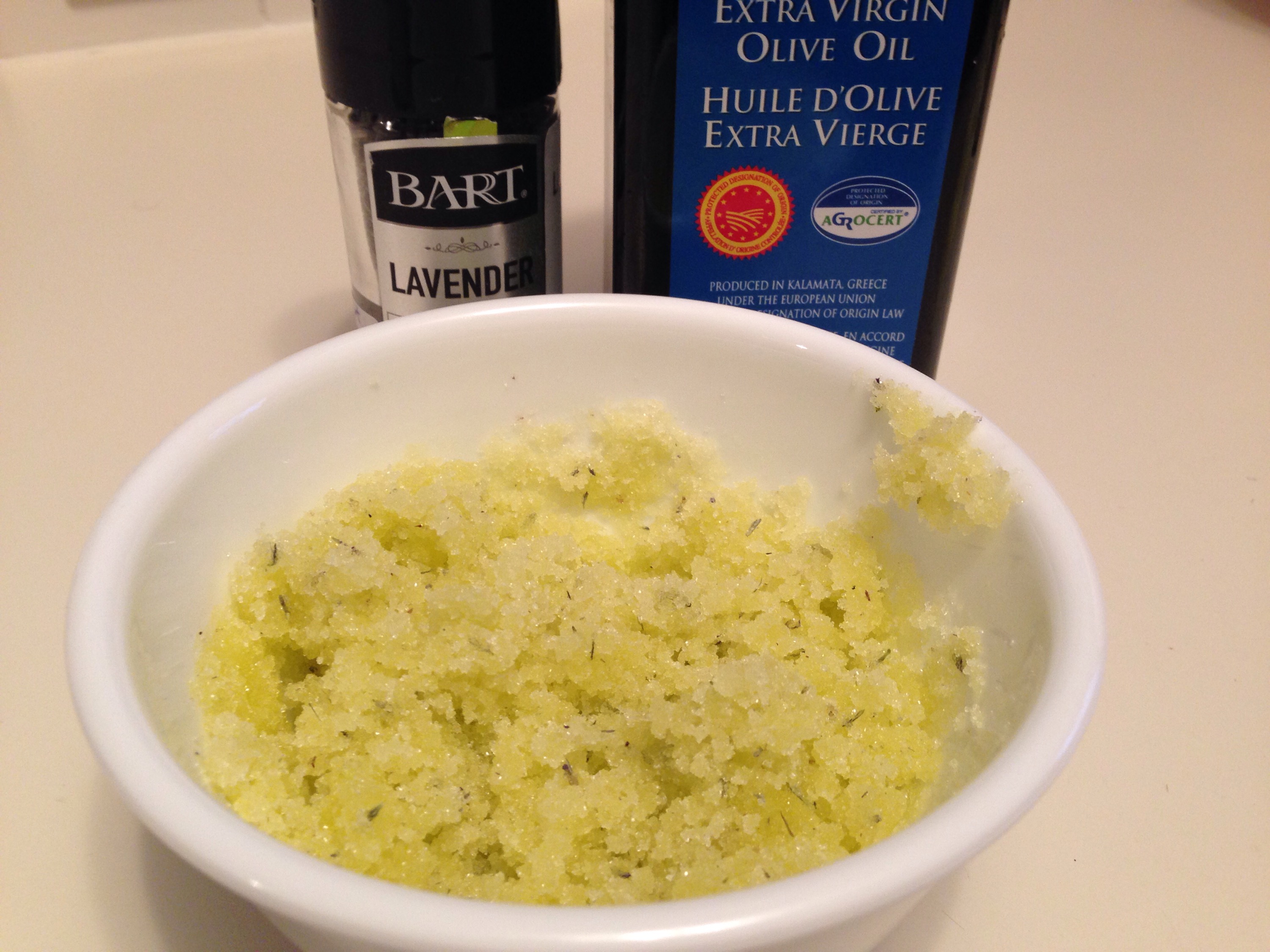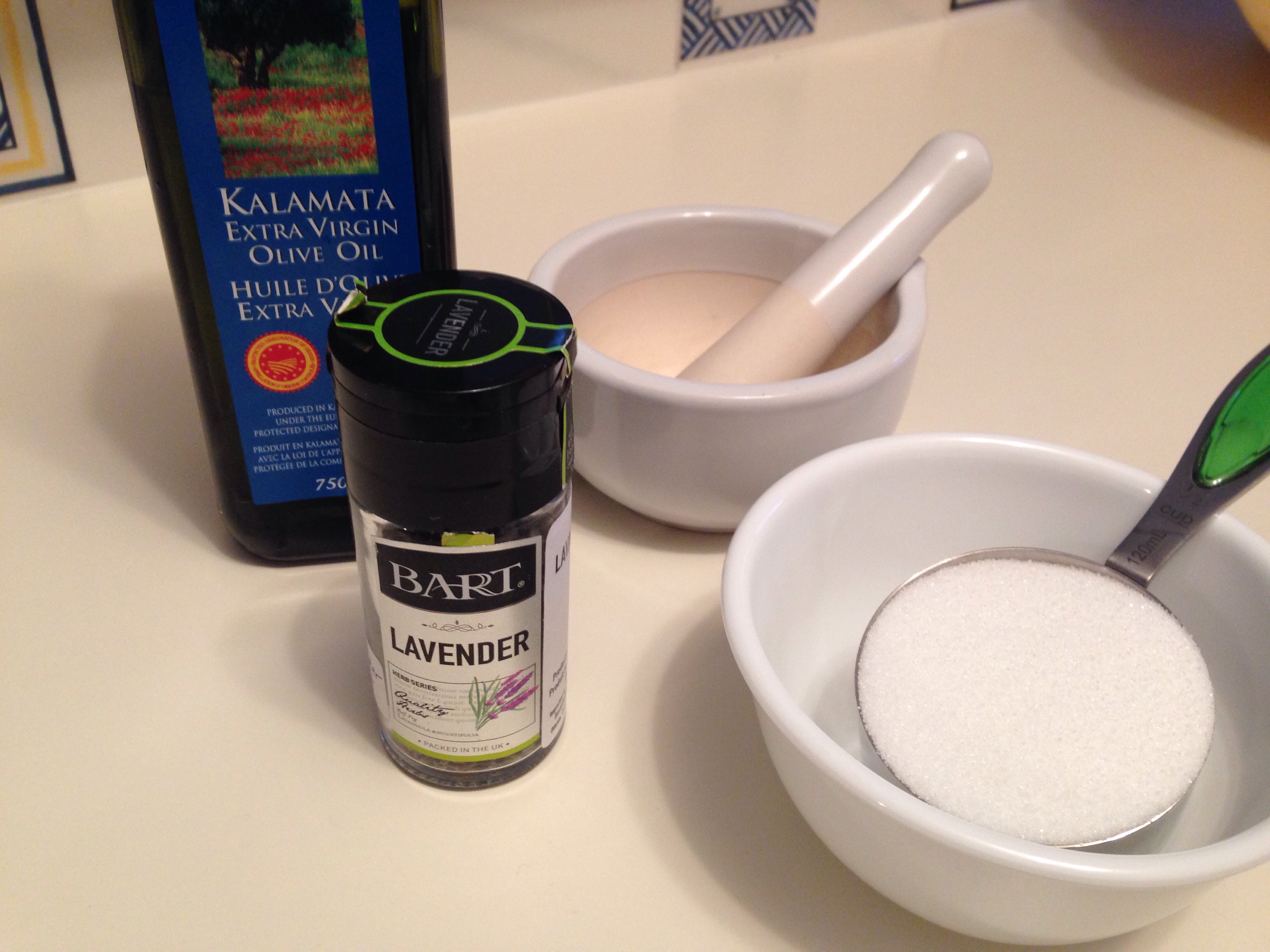 I was in the mood for a new scrub, and was inspired by my sister-in-law and her homemade lotions and potions. I decided to do something that reminds me of Provence, and lavender fit the bill. I had lavender buds leftover from making my Lavender Lemon Shortbread a while back, and it was calling to me!