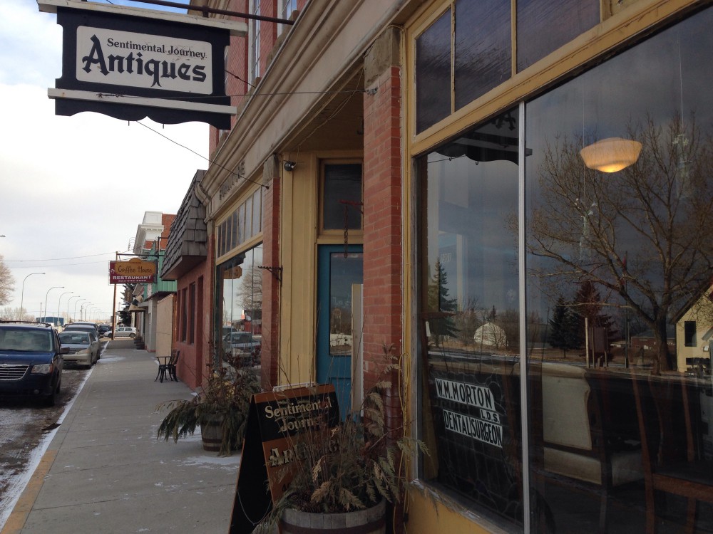 My daughter and I recently spent an afternoon wandering around Nanton poking around in the many antique shops there. Sentimental Journey is our favourite shop because it has such a large selection, and also because it is a rabbit warren of little arched rooms upstairs, making shopping feel like an adventure. The building used to be a hardware store and the upstairs was originally apartments, which explains the charm of the place. Much of the stock is reasonably priced, and inventory ranges from antique fire fighter helmets to stained glass windows, china of all sorts, sheet music, jewelry, furniture, as well as tools and other basic items homesteaders used.  The staff are friendly and welcoming and the whole experience is a treat. Here is the link to their website.