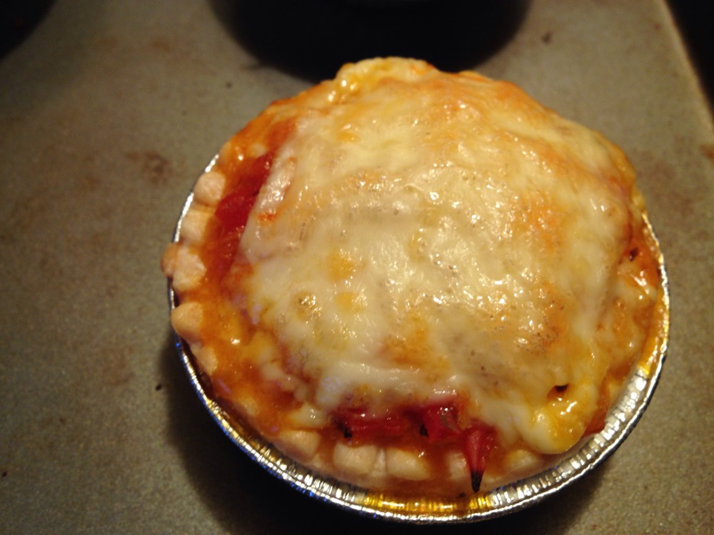 Put a slice of Parmesan cheese in each tart shell. Add a layer of tomatoes, then a slice of mozzarella. Bake at 375 degrees F for about 20 minutes or until the crust is lightly browned and the filling is bubbling.