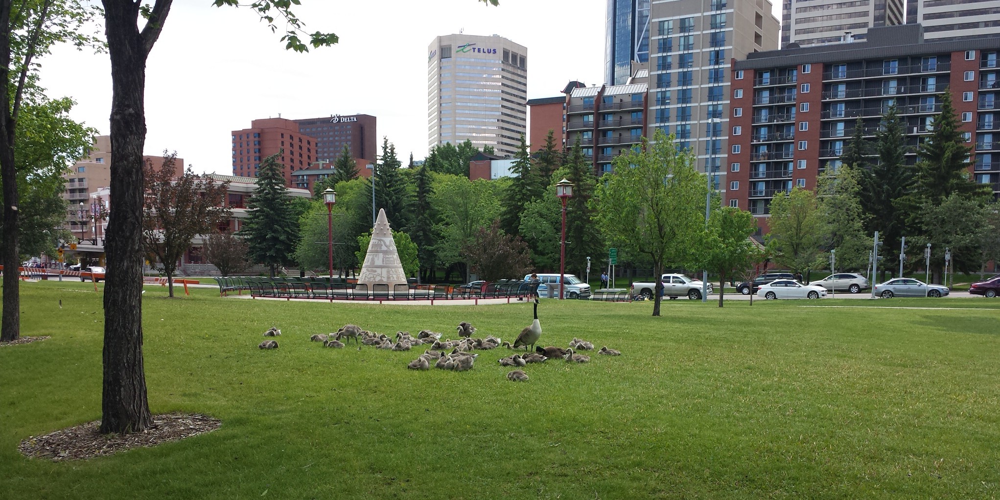 Busy Parents May 17, 2015 Everydaycheerblog Animals 2 comments Look at all the goslings these two geese are shepherding – I count at least 41! My husband took this photo in downtown Calgary. That is quite a brood! Share this: Click to share on X (Opens in new window) X Click to share on Facebook (Opens in new window) Facebook Click to share on Pinterest (Opens in new window) Pinterest Like Loading...