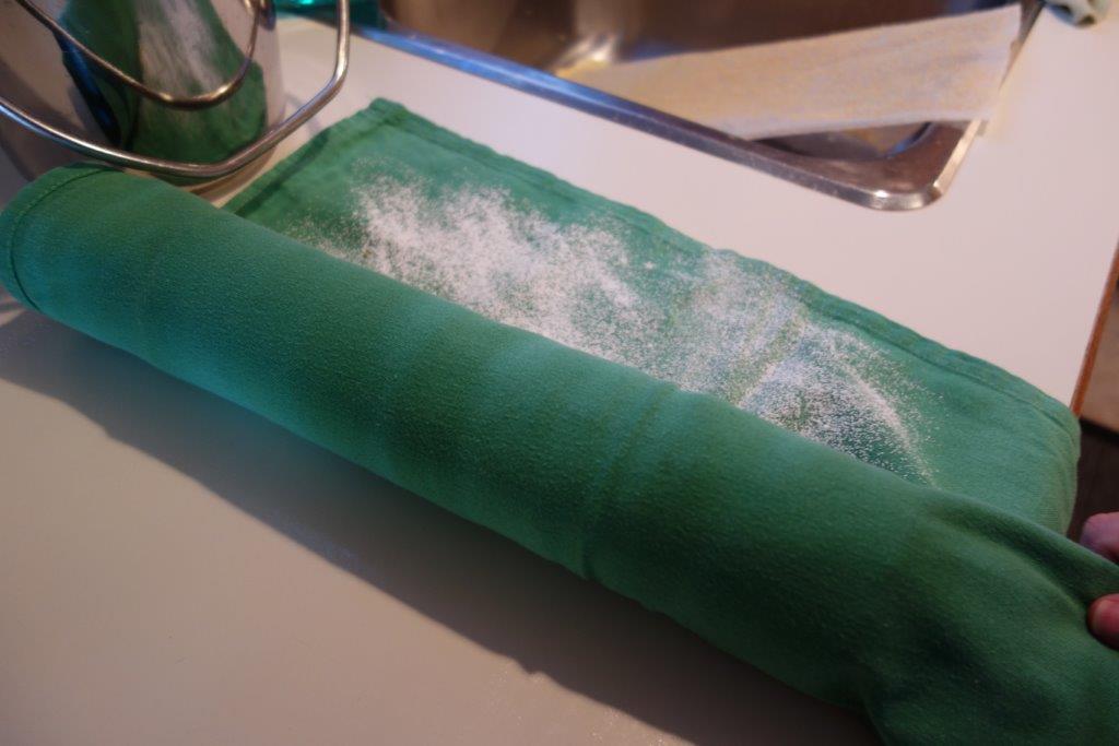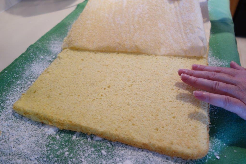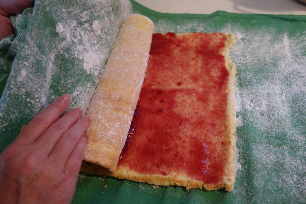 Roll the warm cake and towel together so it cools in the shape you eventually want.