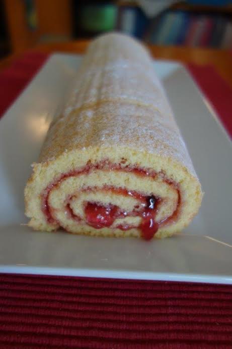 Cool on a wire rack. Unroll, spread with jelly and roll up. Sprinkle with more icing sugar if desired (I do not).