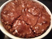 My youngest daughter cannot eat chocolate, so I rarely make things that contain it. However, while the cat is away, the mice will eat chocolate. When my sister-in-law was here, we decided to try out Peanut Butter Chocolate Lava Cakes while said daughter was still in school. It seemed imperative that we should conduct this trial – “in the name of science”, as E put it. We tried to make just two portions, but made three in the end, so I had a chance to see how the dessert would reheat at a later time. “Extremely well” is the answer to that query.