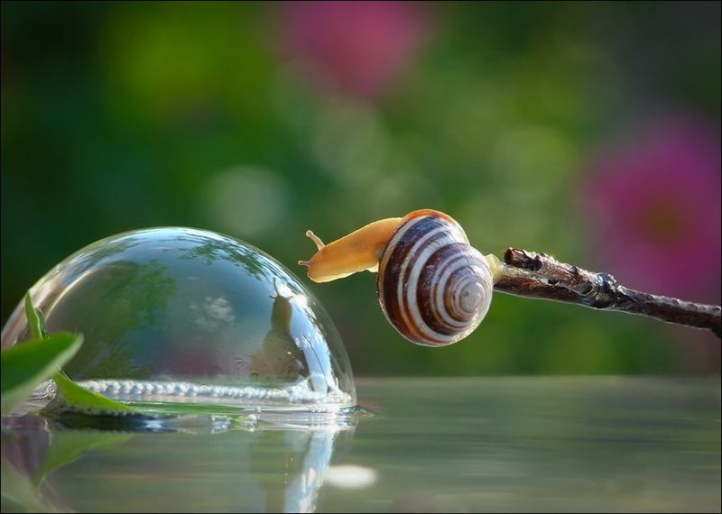 The link below takes you to Odd Stuff Magazine for a feature on macro photography. Very creative and pleasing photos of snails in beautiful settings. Check it out. I think the photos are fantastic.