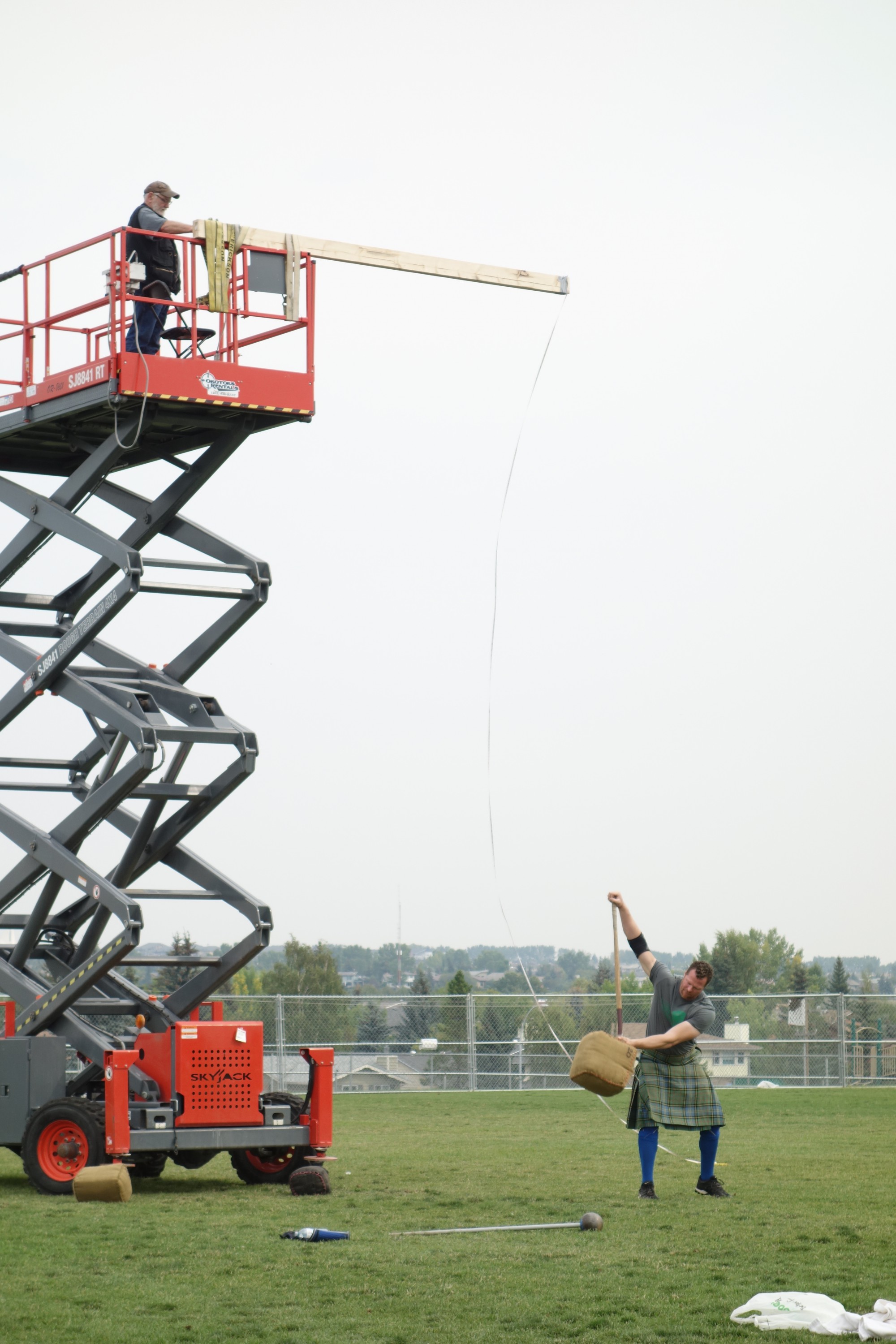 The heavy events are tests of strength and power. The hammer throw, weight throw, weight over bar, the sheaf toss and of course, the caber toss. Great fun.