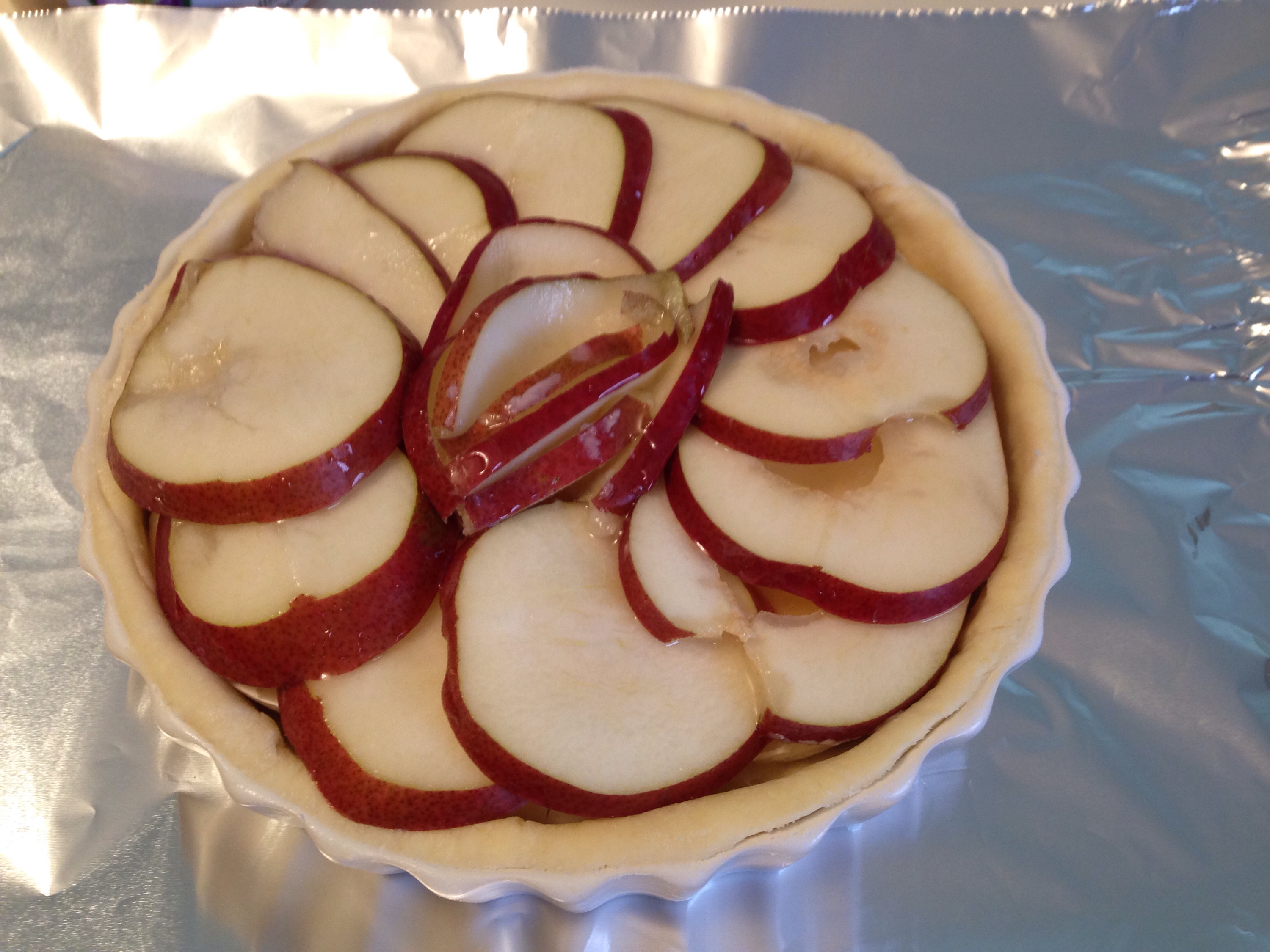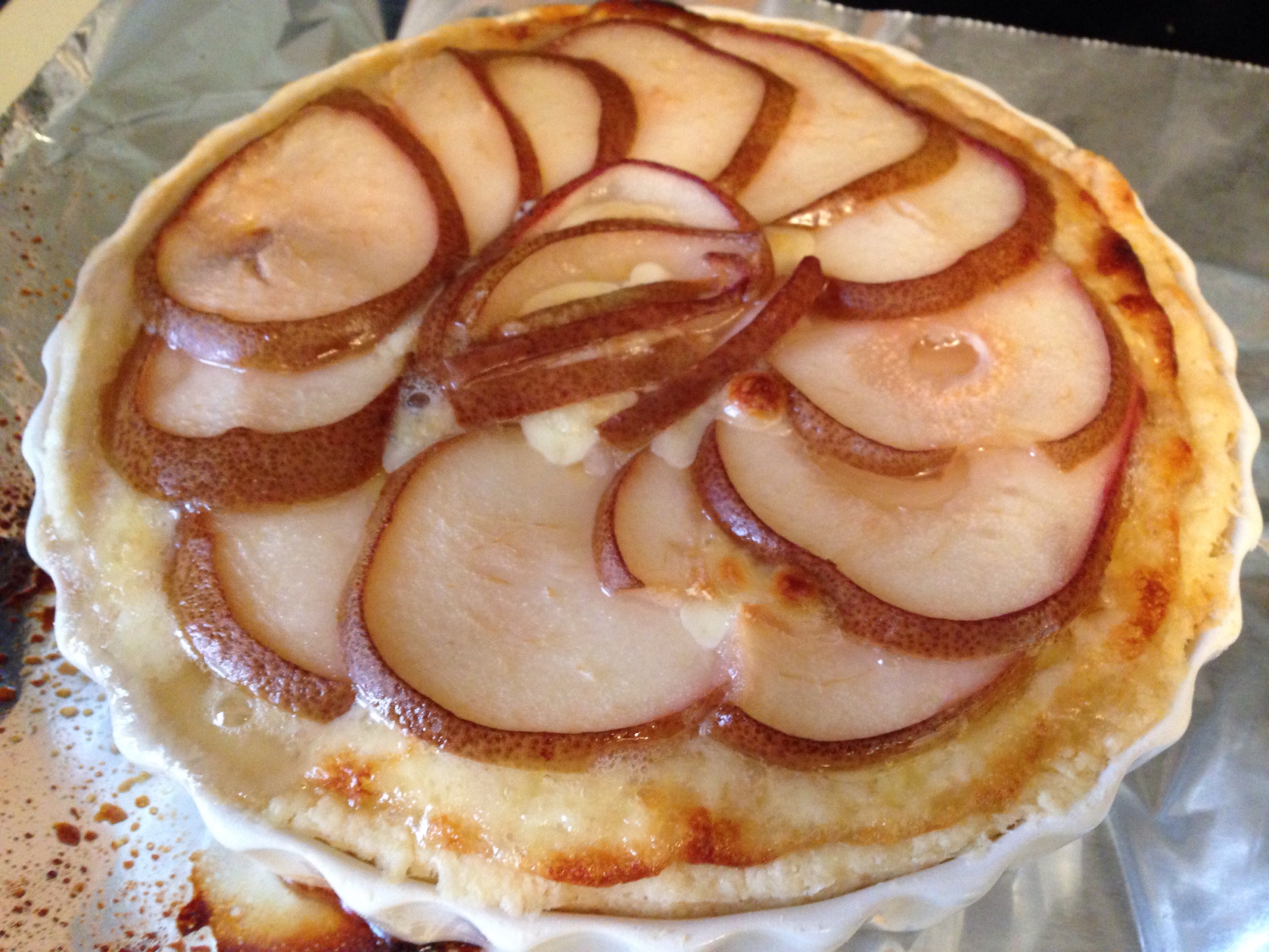 Line the crust with the Brie and top with pears. Warm and honey and stir in 2 Tbsp. Amaretto. Pour over the pears.