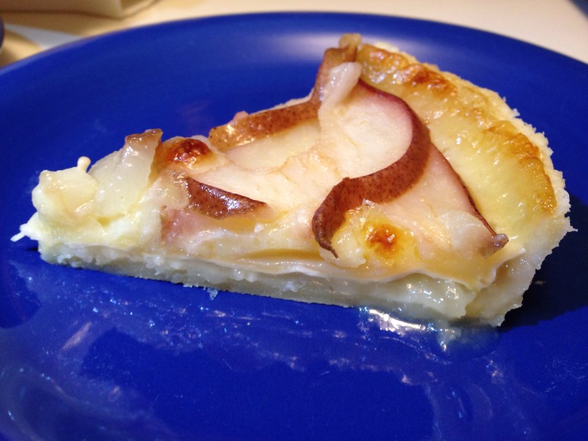 Pear-Brie Tart is a not-so-sweet dessert – a bit like combining the cheese and fruit courses in a flaky pastry shell. My husband is not convinced, but I quite like it, especially followed by a little nip of Amaretto or brandy.
