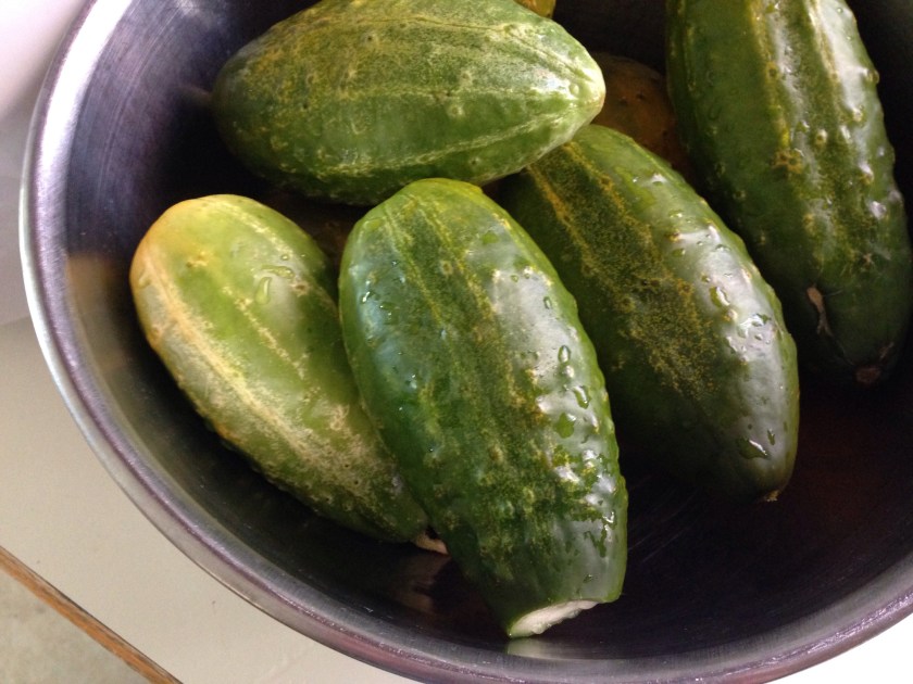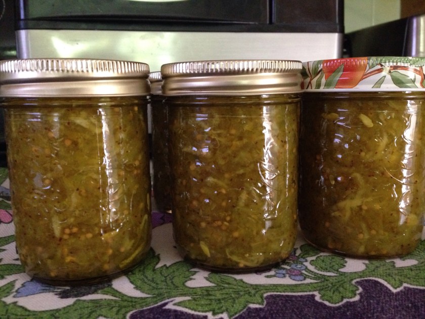 With all the heat we have had this summer, the cucumbers have had a banner year. I made relish with some of them and I am very pleased with the result. It has a good, vinegary tang, but the flavour of the cucumber comes through very well.