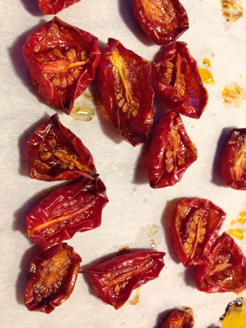 One of my sisters-in-law got me going drying tiny tomatoes. We consider them crack for tomato lovers. They have an earthy, yet sweet and bountiful flavour. I can eat them like popcorn (if I could eat popcorn). They are simple to make as well.