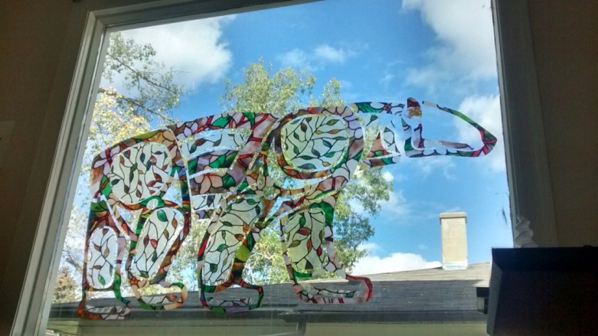 My elder daughter recently moved into an apartment that has lovely, large windows. Being a creative person, she set to work on an art project to keep all the incoming light, but lend a bit more visual privacy and showcase her beautiful original art. She has been drawing bears, wolves and the like since she was very small. I have never regretted investing in drawing lessons for either girl, and am always proud of, and uplifted by their artistic endeavors. Simply put: they bring me joy.