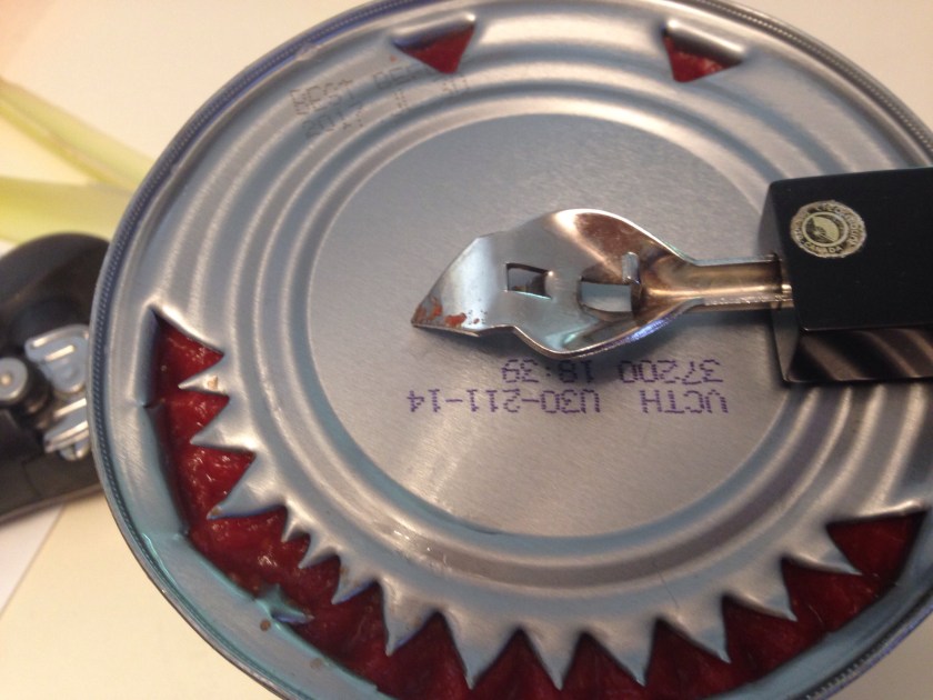 My can opener failed to open this can for some reason, so I had to go Old School on the can. I couldn’t resist adding eyes to make a face. lol