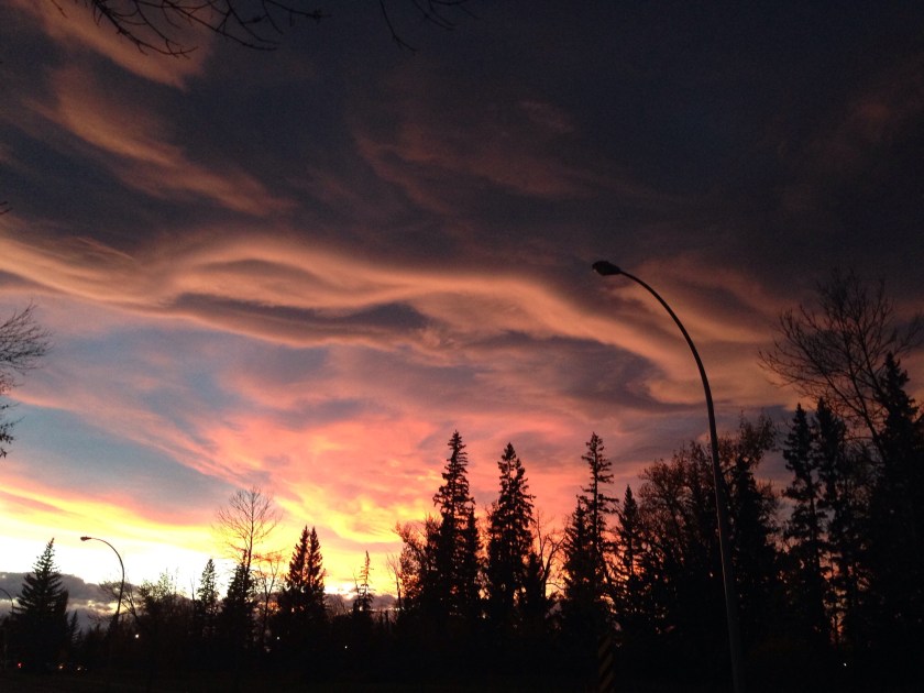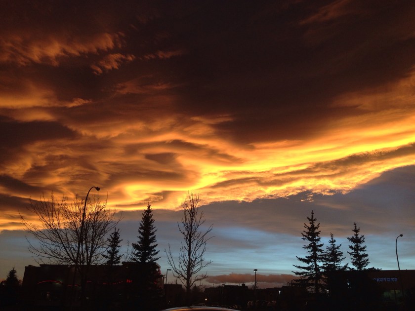 We have been having beautiful sunsets recently, and the cloud formations on Saturday looked like golden, fluffy, duvets coming down to tuck us in.