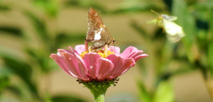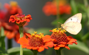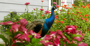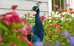 it helps to have a bed of zinnias and visits from neighboring peacocks.