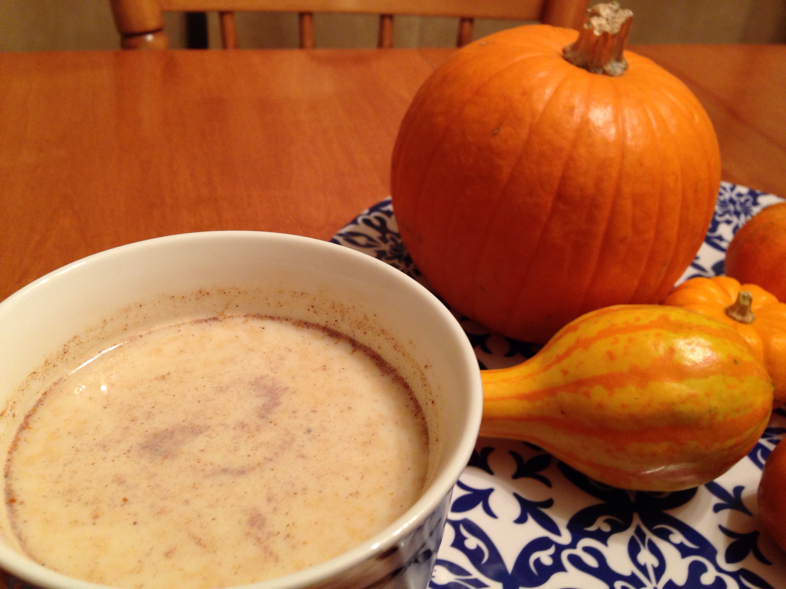Halloween temperatures where we live can vary from +15 to -25 degrees Celsius, so kids can come home quite cold, even if their costume fits OVER a snowsuit! When my kids were young, we were big Harry Potter fans, so we came up with something that Harry might have been served at the Three Broomsticks – Pumpkin Potion. I used to have this drink waiting for them when they returned with their candy haul. It filled them up a bit with something other than candy and warmed them up from the inside. Surprisingly, last weekend one asked if I would make it for her. I thought she would add coffee, but no, it was enjoyed in the traditional way! I thought some of you might enjoy it as well, so here you go, and Happy Halloween tomorrow.