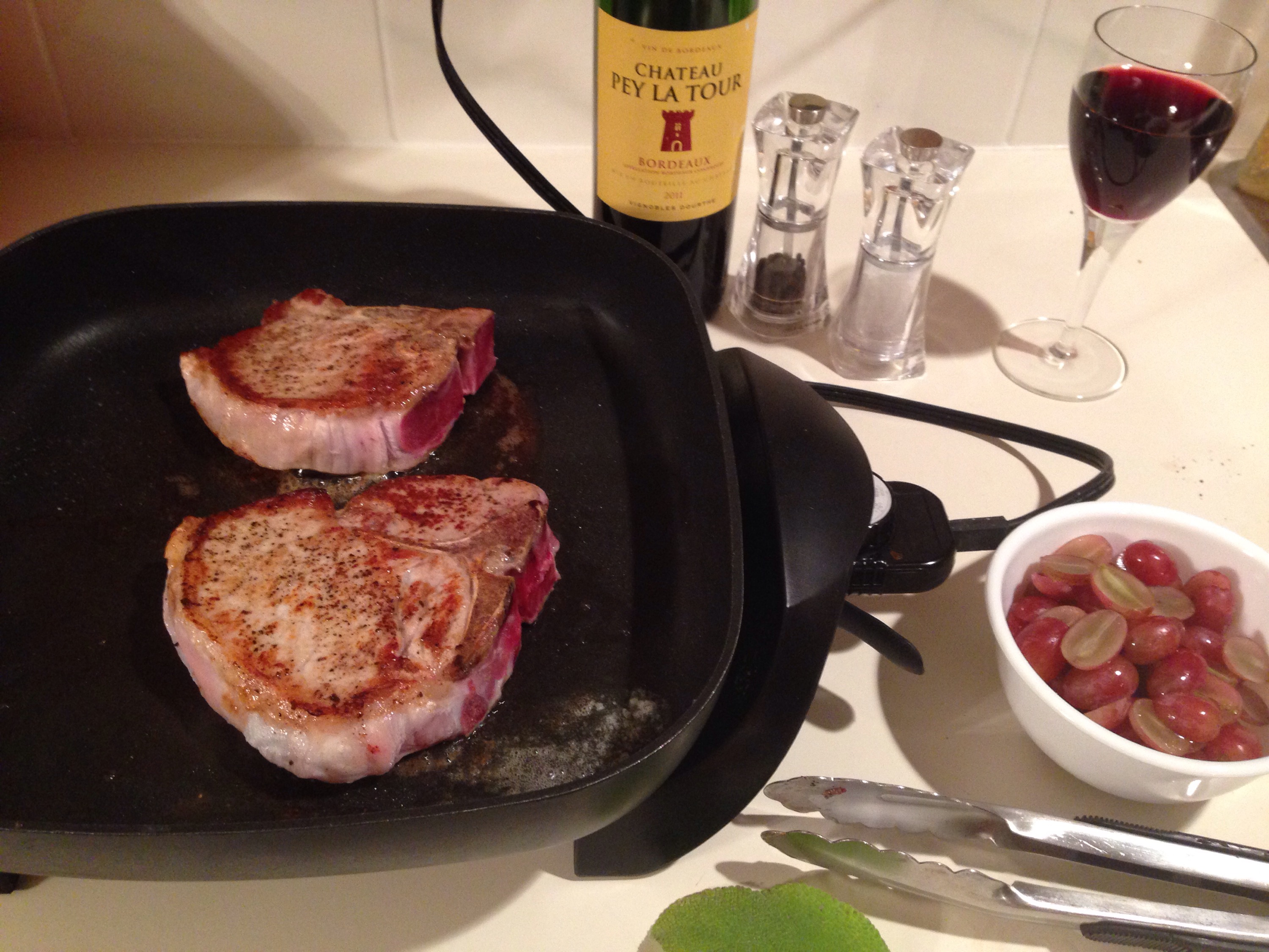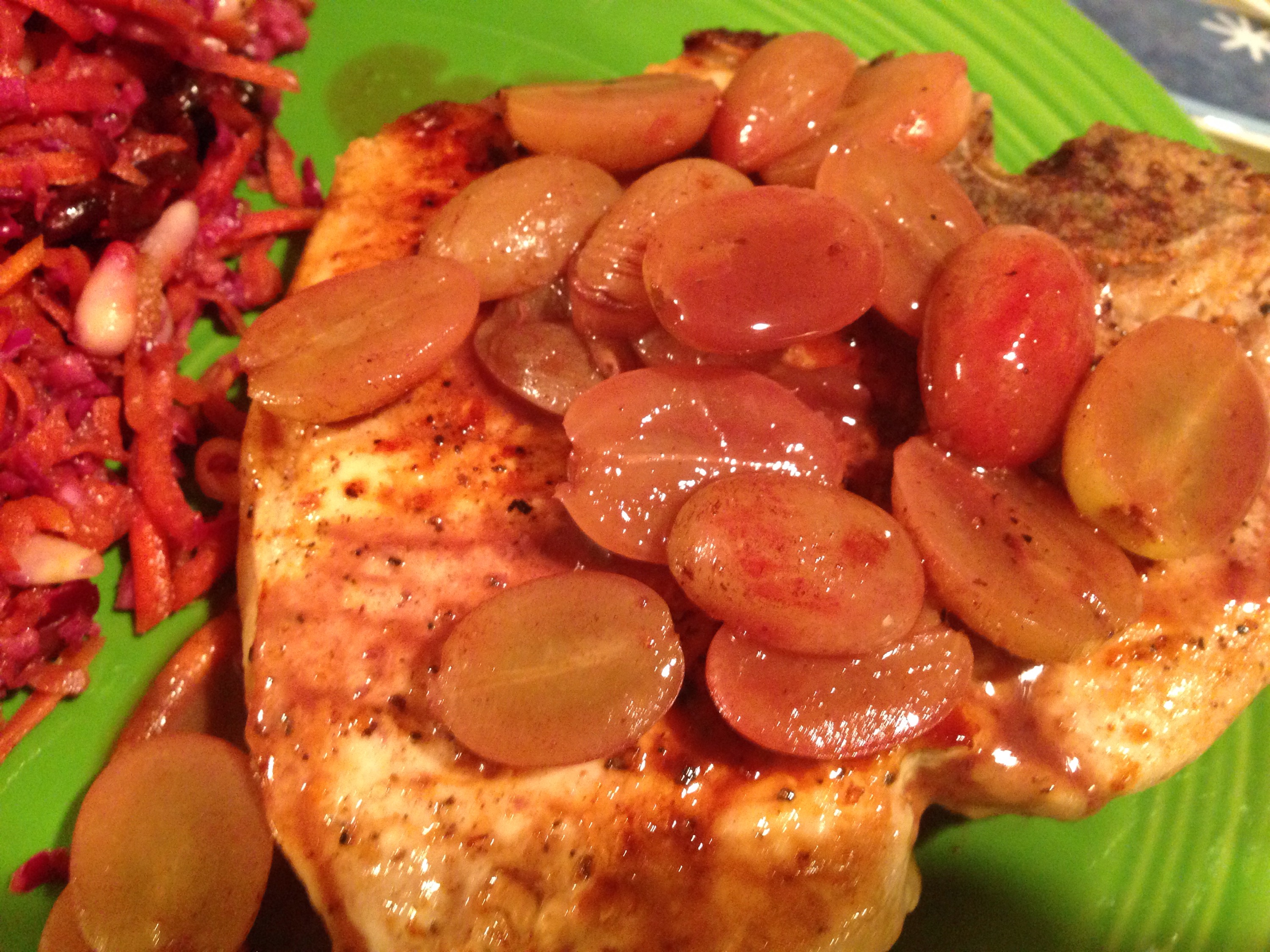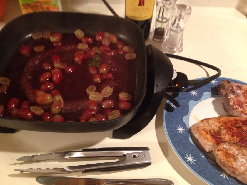 Pork Chops with Grapes and Red Wine Pan Sauce
