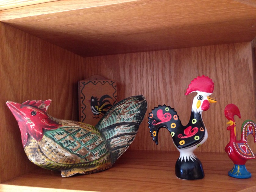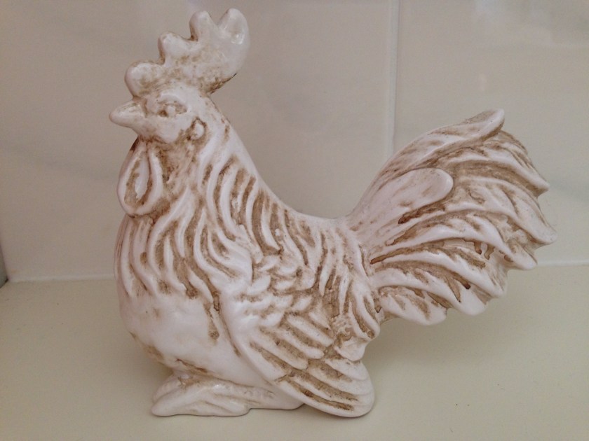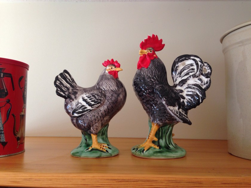 Do you have a collection that you fell into? My mom had a small chicken collection and gave me two of my favourites. I find chickens to be attractive and interesting birds. Most of my family and friends are aware of this quirk and have added to my collection over the years. Looking at the chickens is part of my daily life in the kitchen. Cheers to chooks!