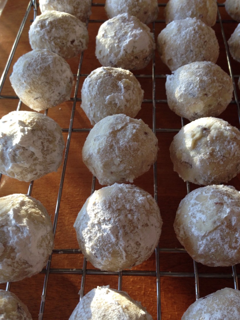 These cookies are a sort of ball-shaped, pecan flavoured shortbread. I like them best after they are a few days old.