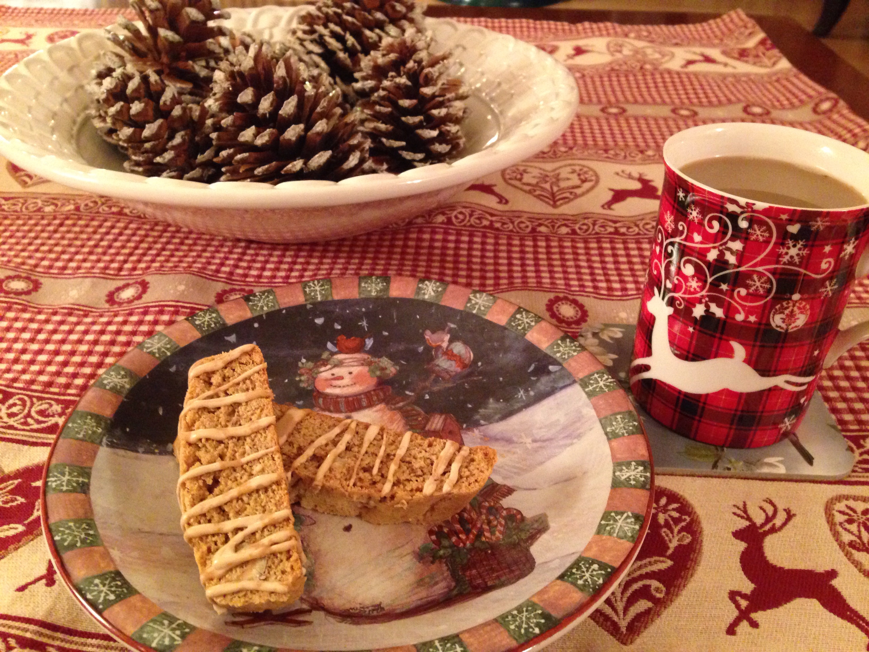 This is the newest variation on my biscotti recipe. Coffee and hazelnut with a coffee glaze. An old classic with a novel flavour – my favourite kind of baking. Perfect with a mug of coffee or hot chocolate.