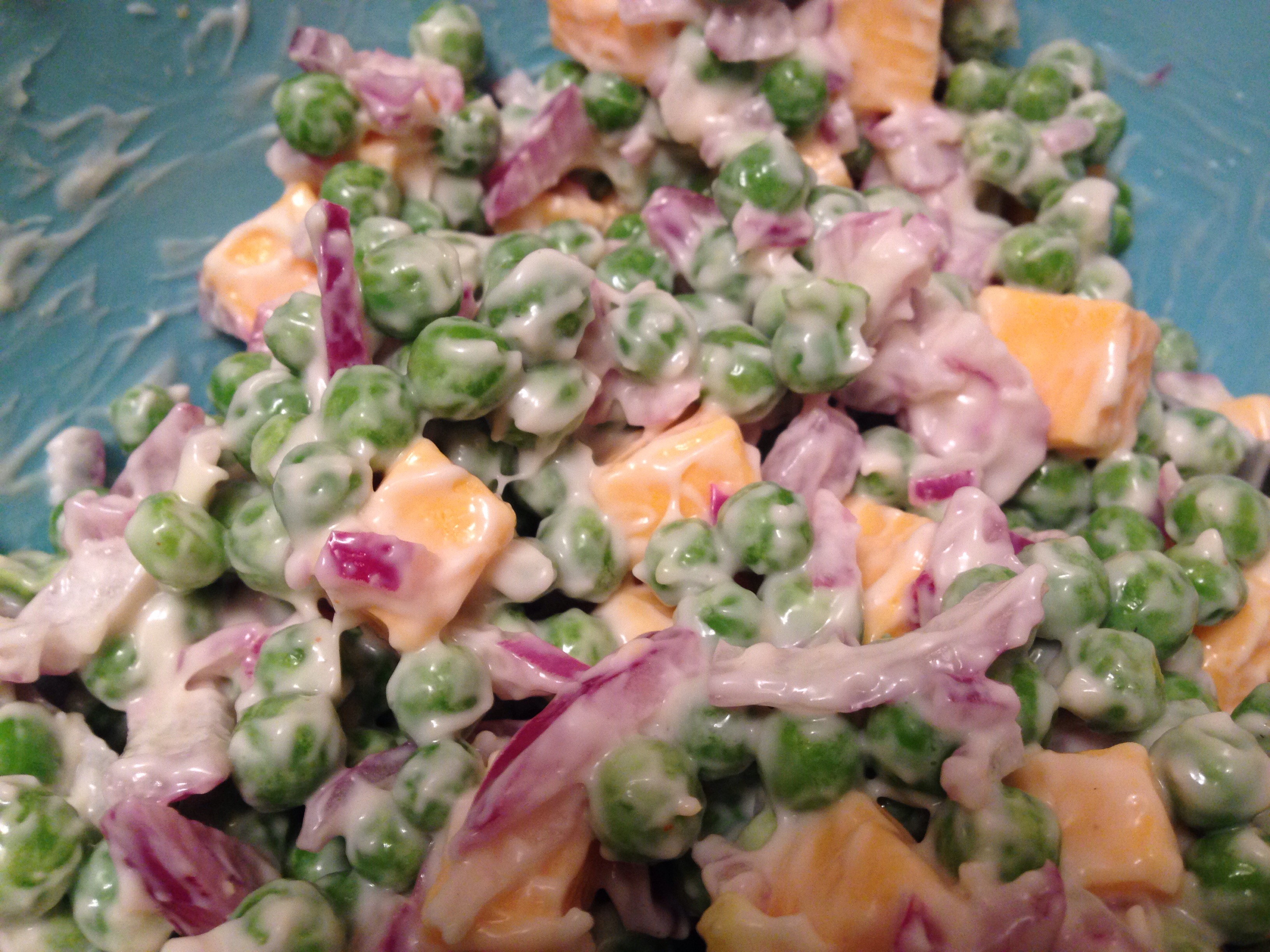 Mix ingredients together and wait for the peas to thaw before serving. It is a good salad to take on a picnic as it starts out frozen so stays cold for a good while.