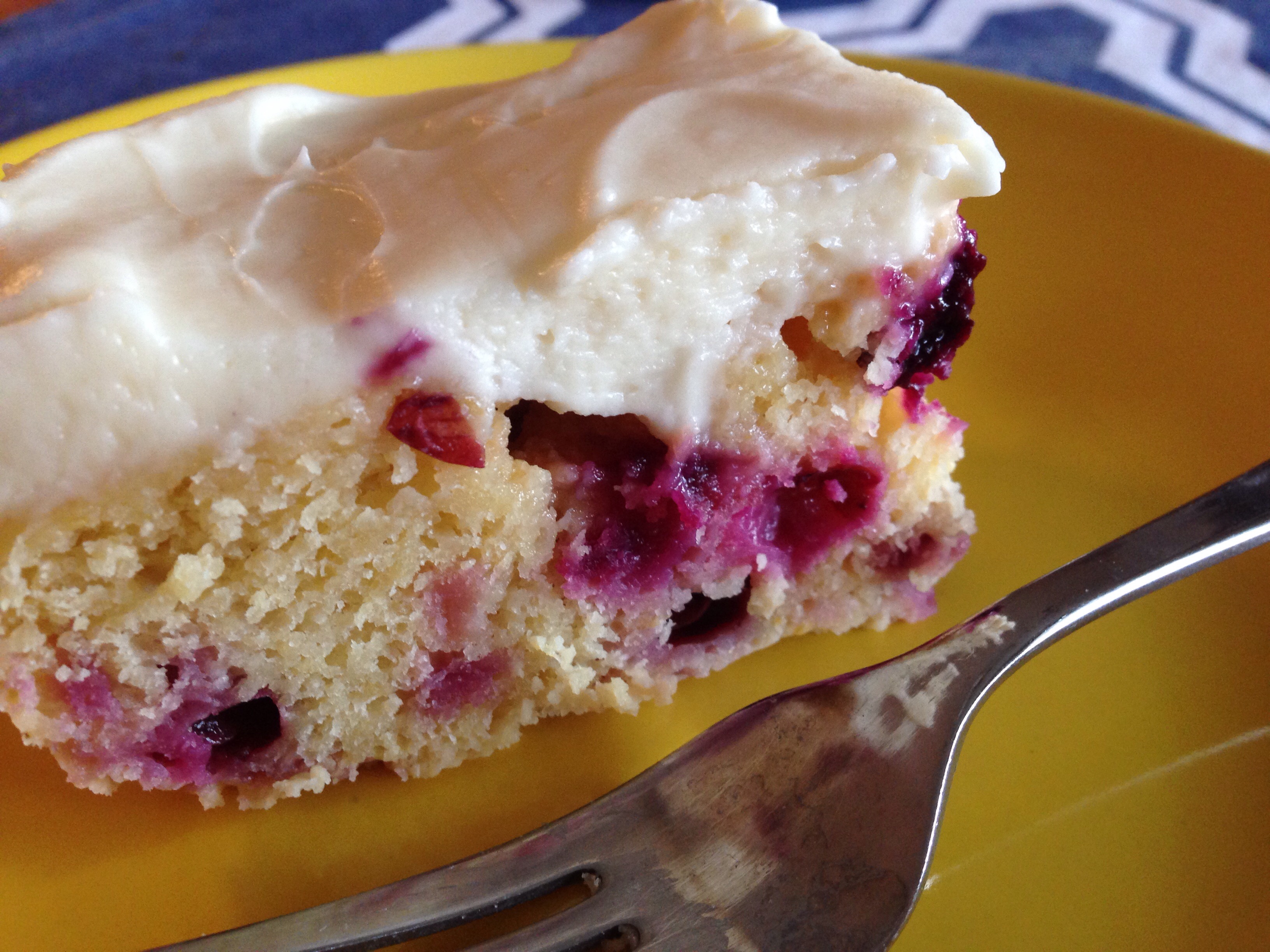 On Friday I thought it was time to try something new to me in way of cakes and settled on Lemon Blueberry Layer Cake from Sally’s Baking Addiction. She has lovely photos and clear instructions for the cake on her website . I decided to make a 9×13 cake instead of the layer cake to make it easier to transport over gravel roads. (Arriving with a cake that had been bounced apart was not appealing.) This is a rather heavy cake, like a pound cake, and has nice lemon and blueberry flavour. It took about 40 minutes to finish baking in the 9×13 pan.