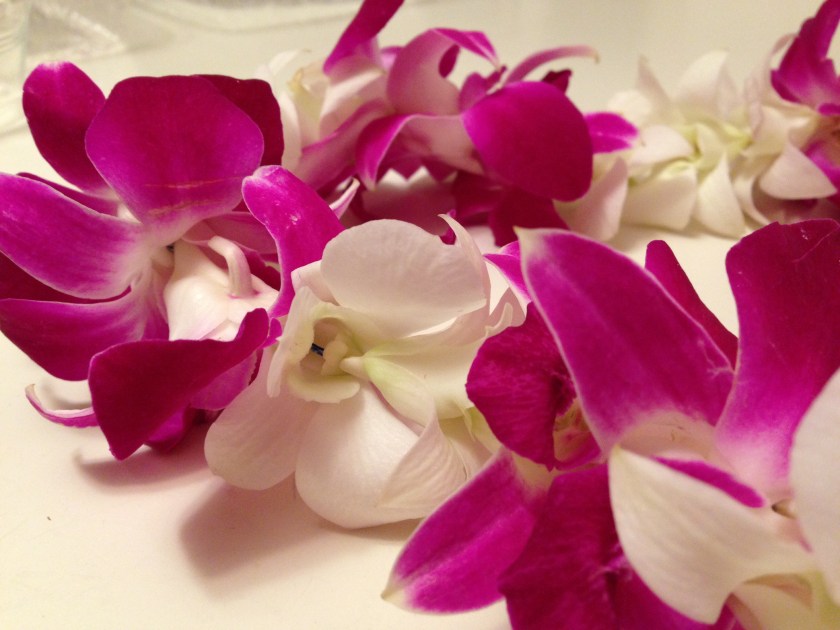 Another special birthday flower treat! Friends brought me this sweet-smelling lei when they returned from Hawaii. I have been wearing it as I do my taxes, and I must say, it dramatically cheers the experience!