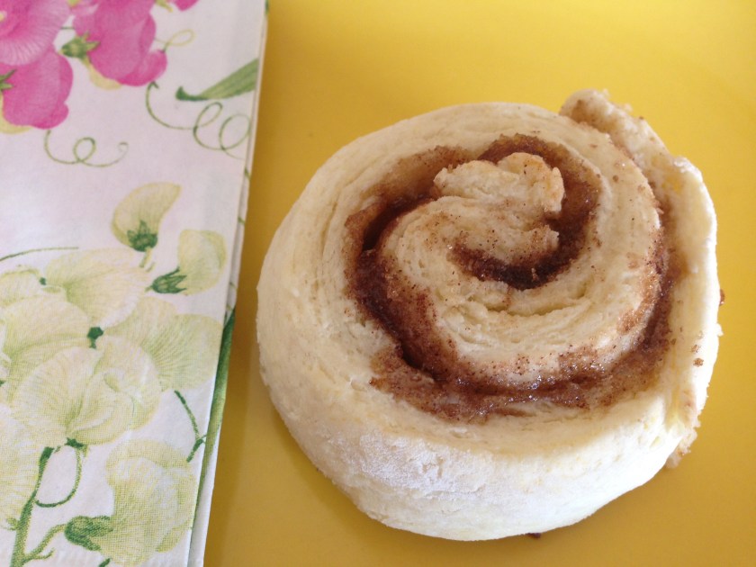 When you want cinnamon buns but don’t have time to let dough rise, these baking powder biscuit rolls are the cat’s meow. They are also a nice snack on a hike.
