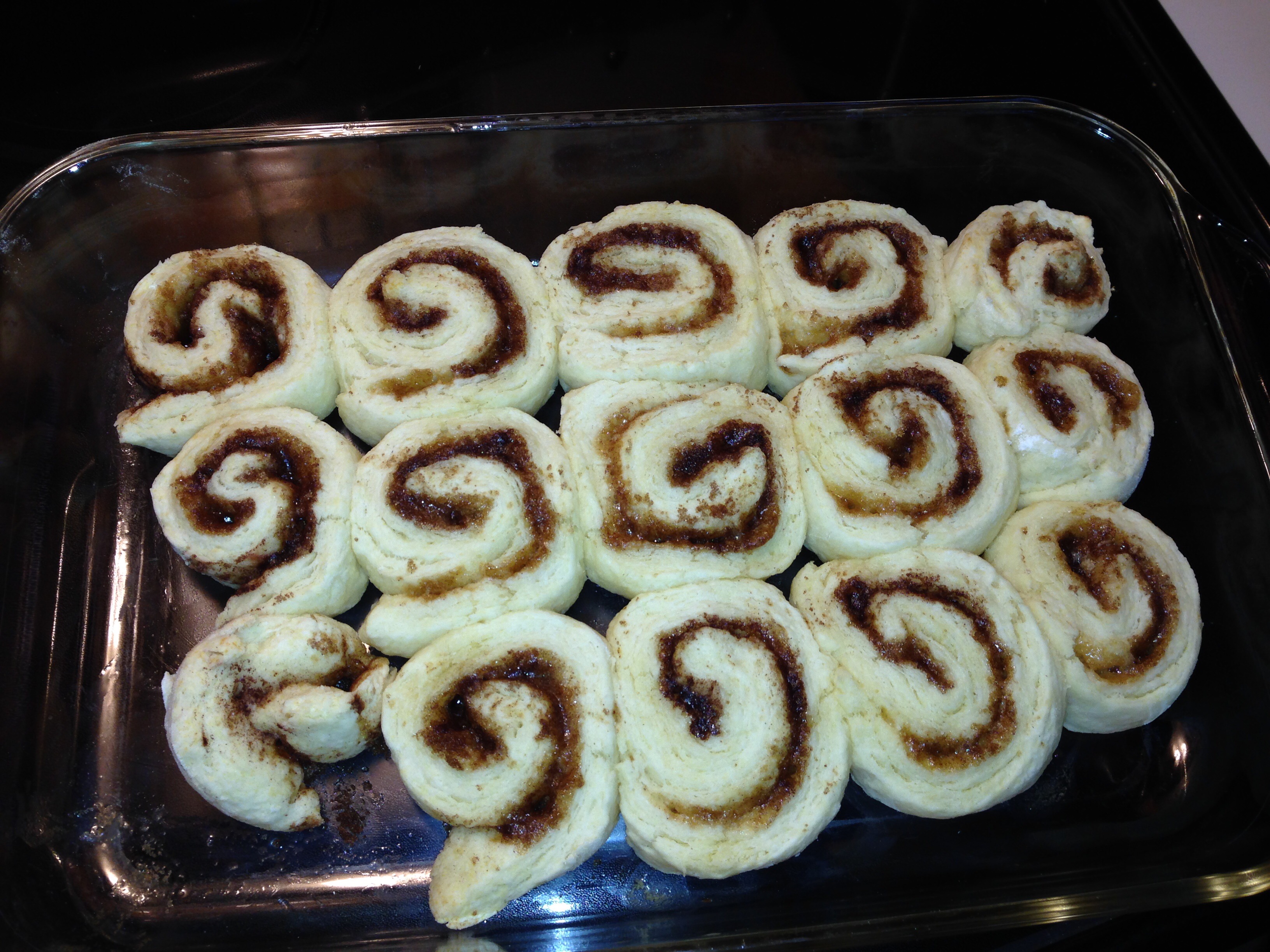 When you want cinnamon buns but don’t have time to let dough rise, these baking powder biscuit rolls are the cat’s meow. They are also a nice snack on a hike.