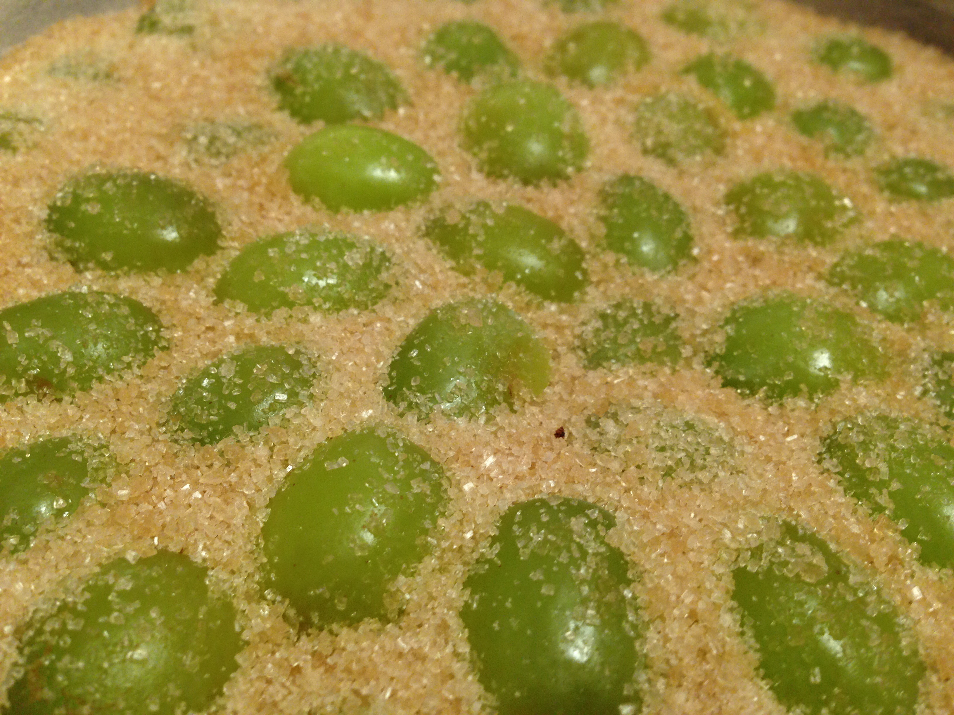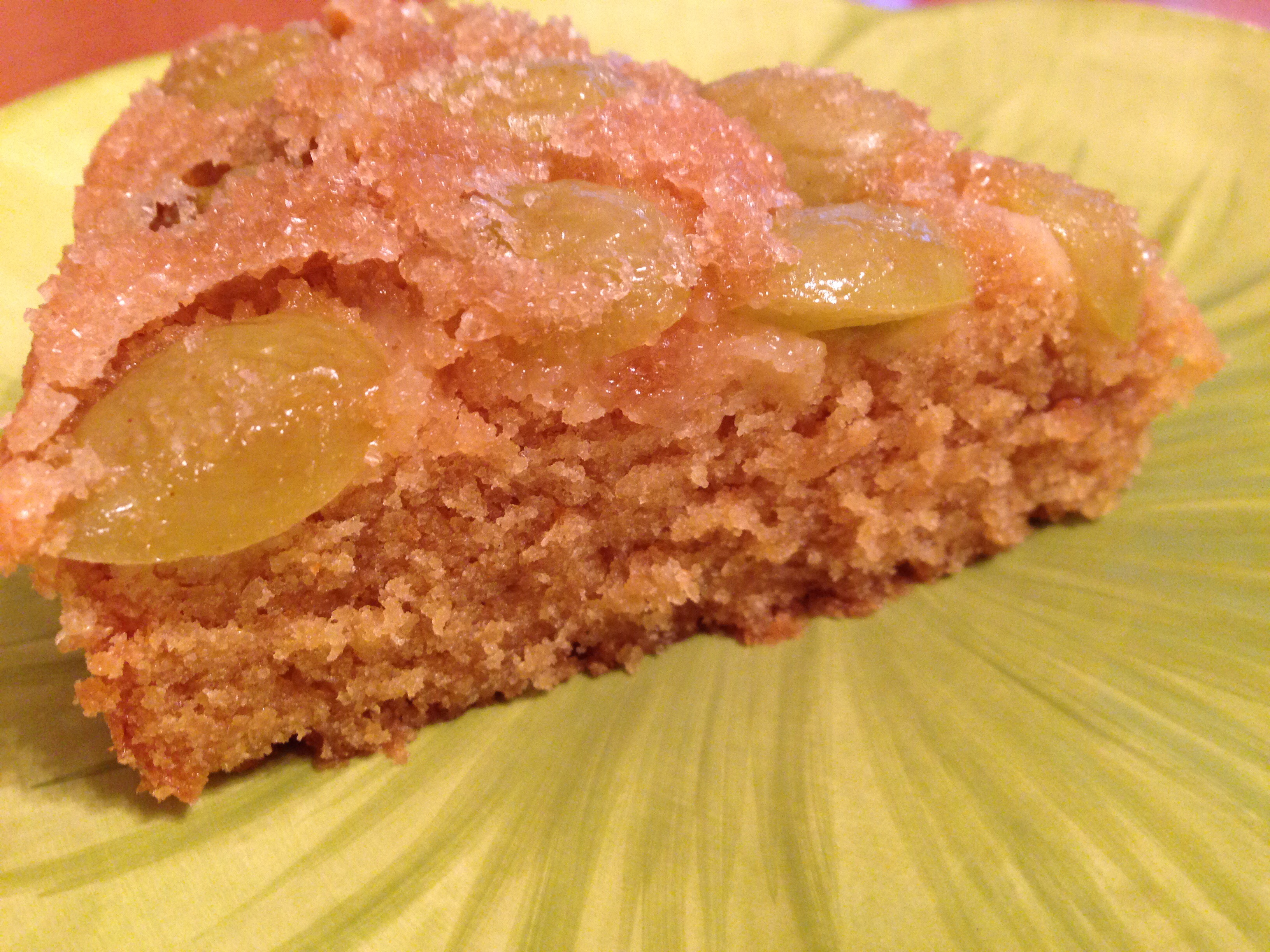 I prefer this cake cold, and the sugary top provides a crunchy contrast to the juicy grapes and light cake.