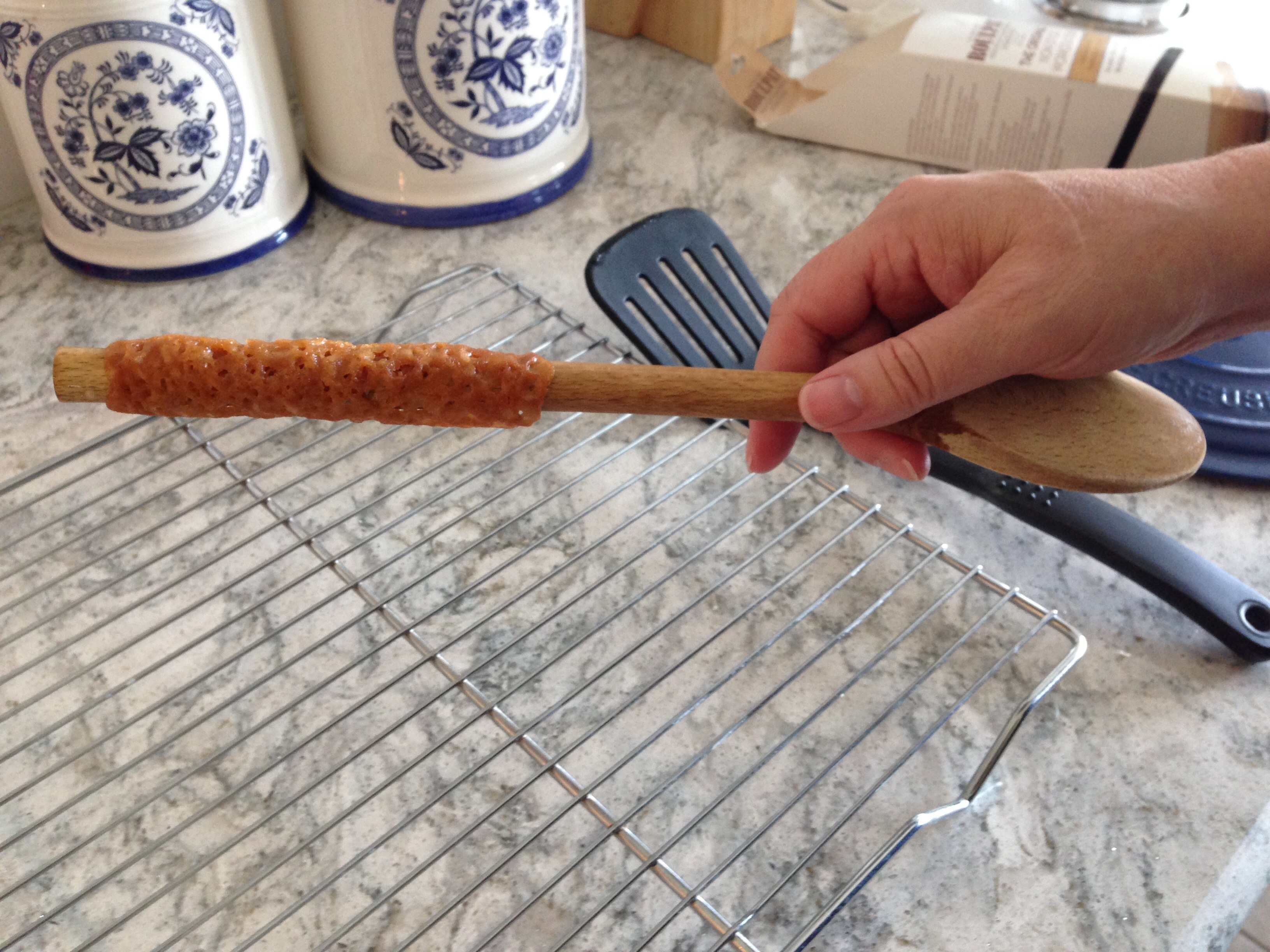 This week, my older daughter and I tried out Mary Berry’s recipe for Brandy Snaps. They were a big hit! It is a good recipe, and because reprinting it would breech copyright, I have only linked to it above, but I thought I would add some photos to illustrate the procedure. A picture is worth a thousand words and all.