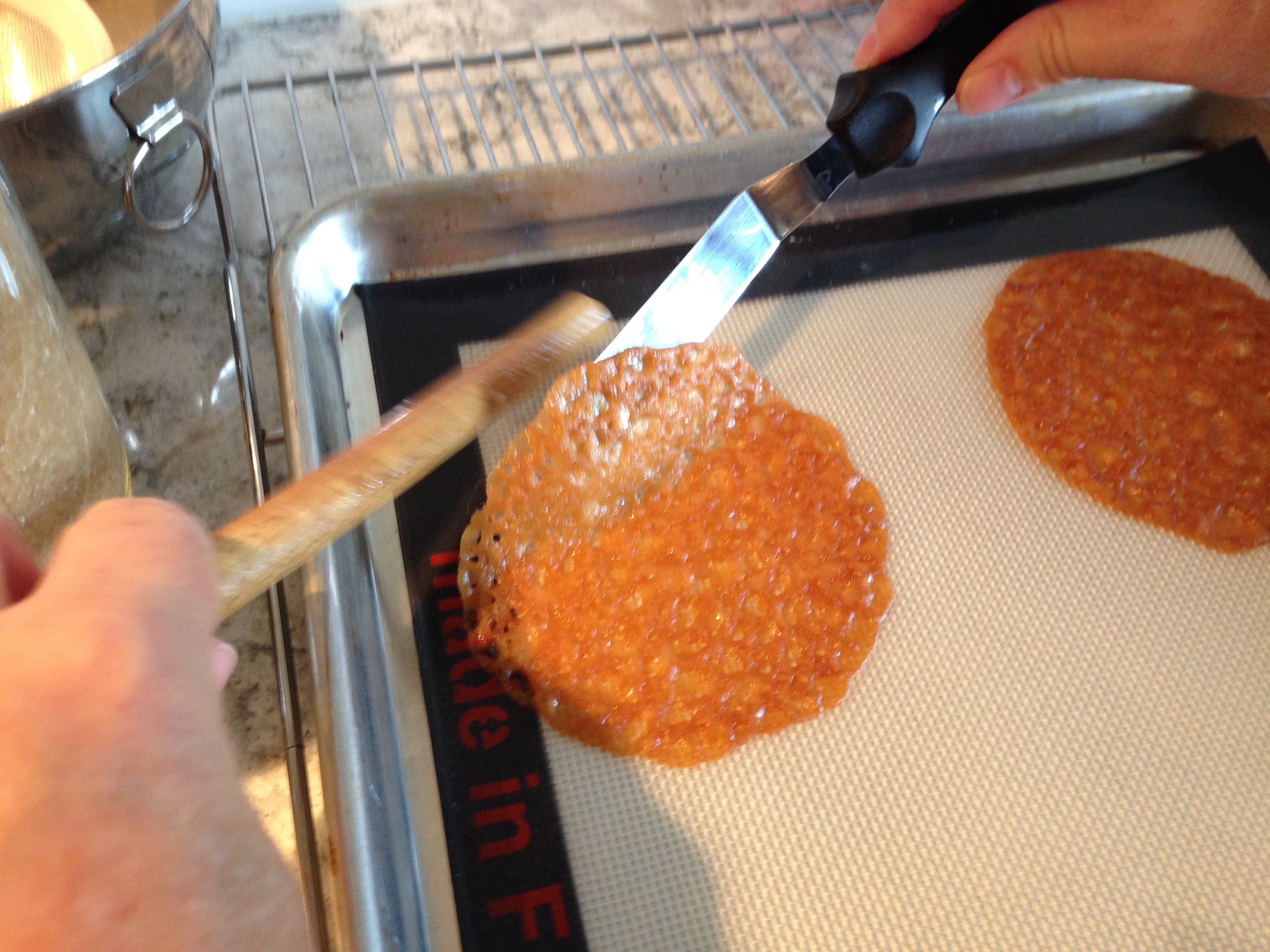 This is the crispy, lace-like cookie just out of the oven.