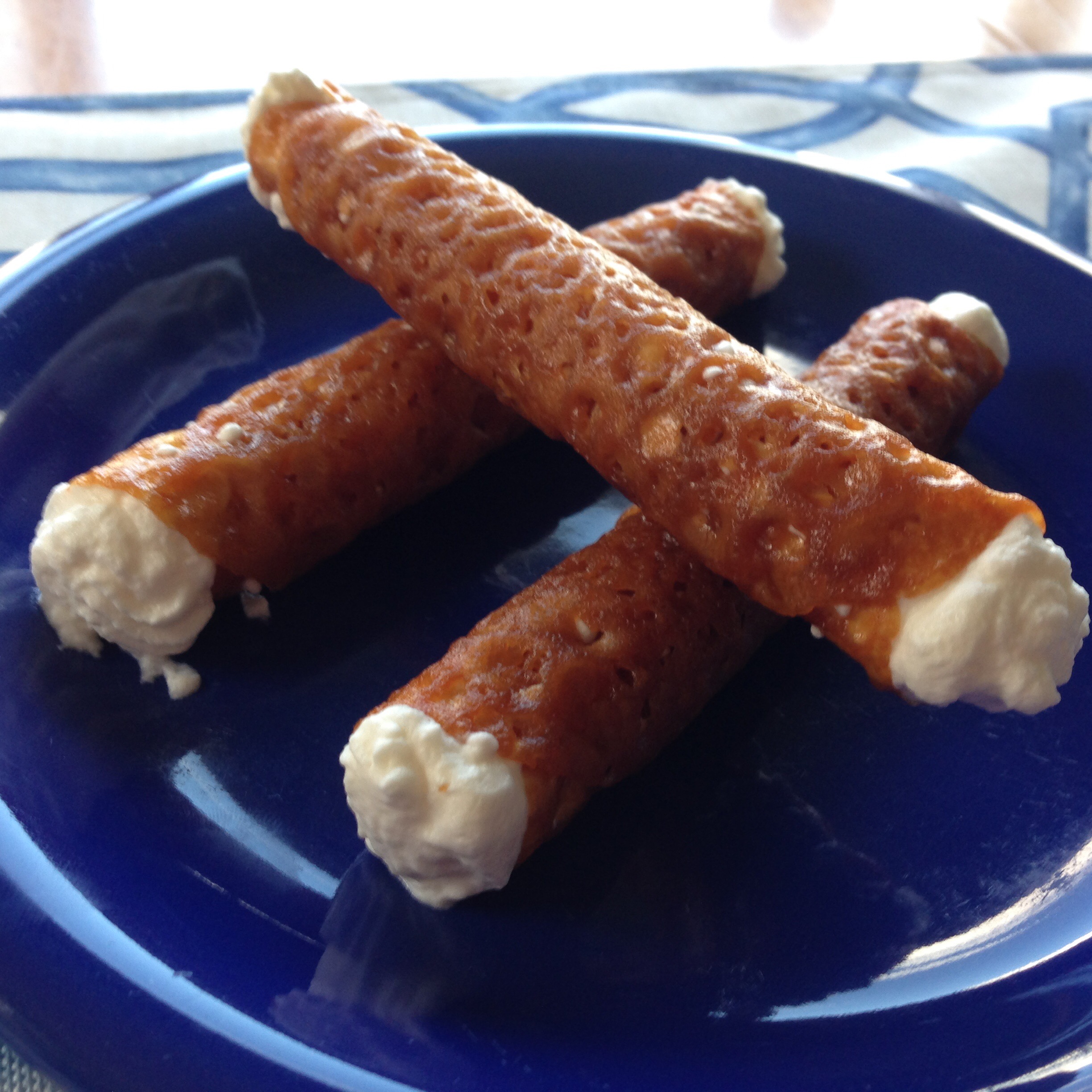 Roll it around the greased handle of a wooden spoon, squeeze to fasten the edge and let cool on a rack.