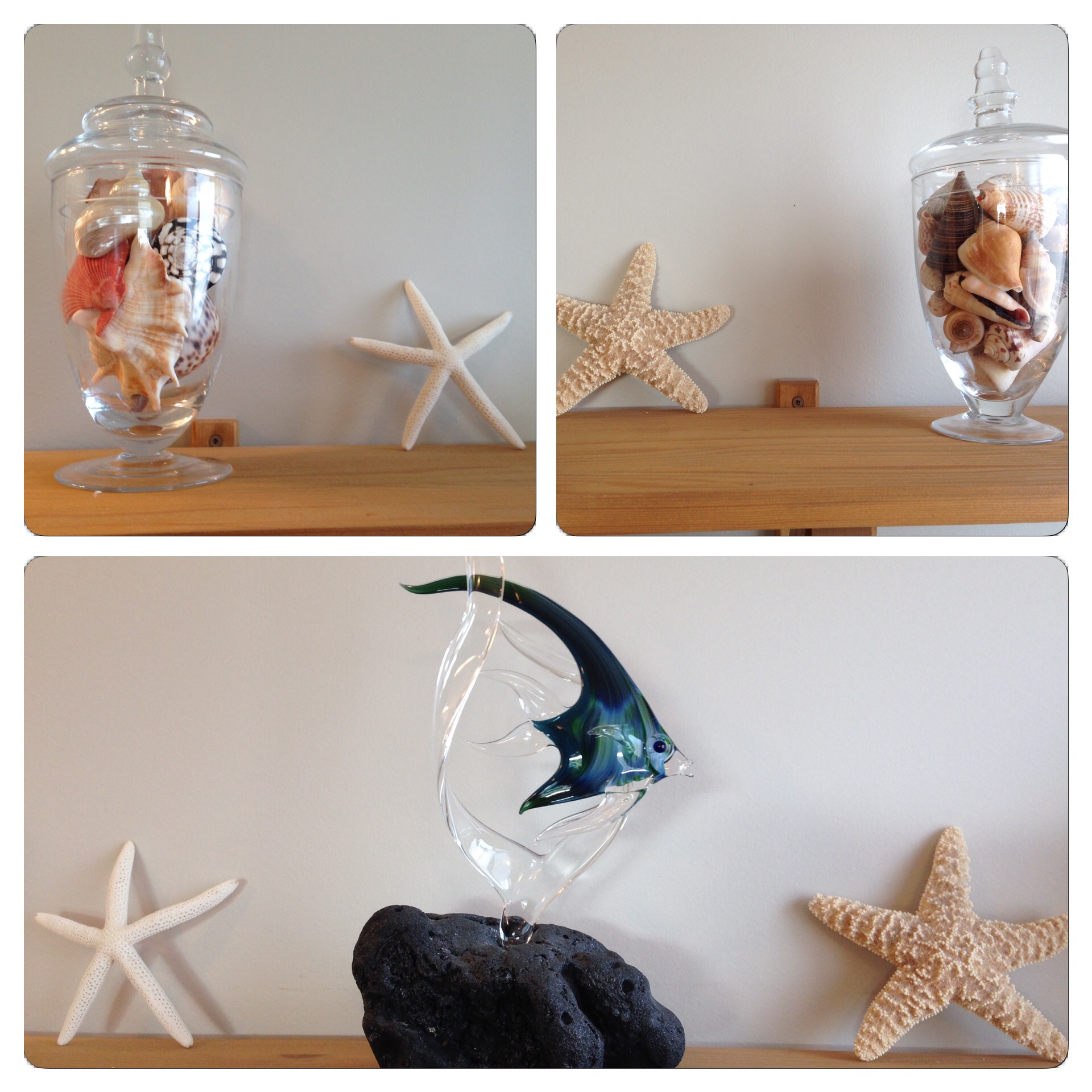 I added some shells collected on holidays, and a glass fish in lava that I bought on Maui.