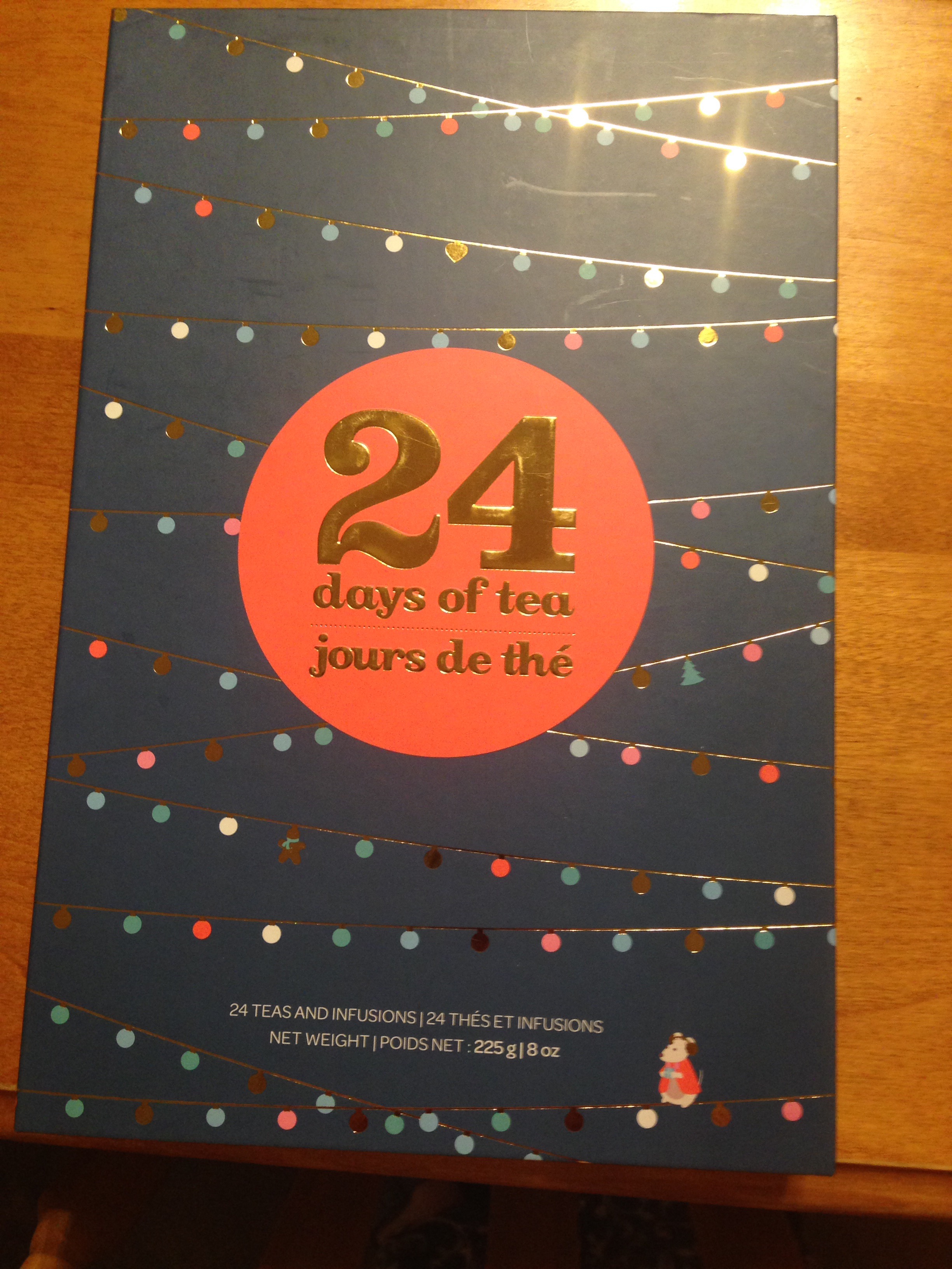 One of the most lovely things I received for Christmas was this tea calendar. Produced by David’s Tea, there are twenty four different types of tea to enjoy. There is enough of each type for two mugs, so that is 48 cups of tea to look forward to .