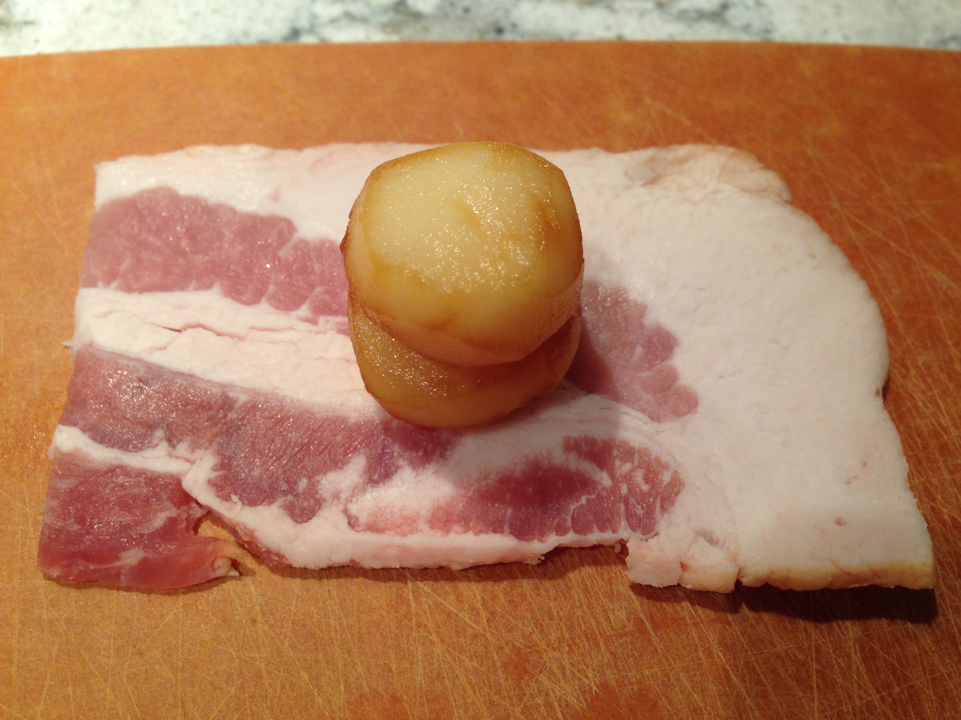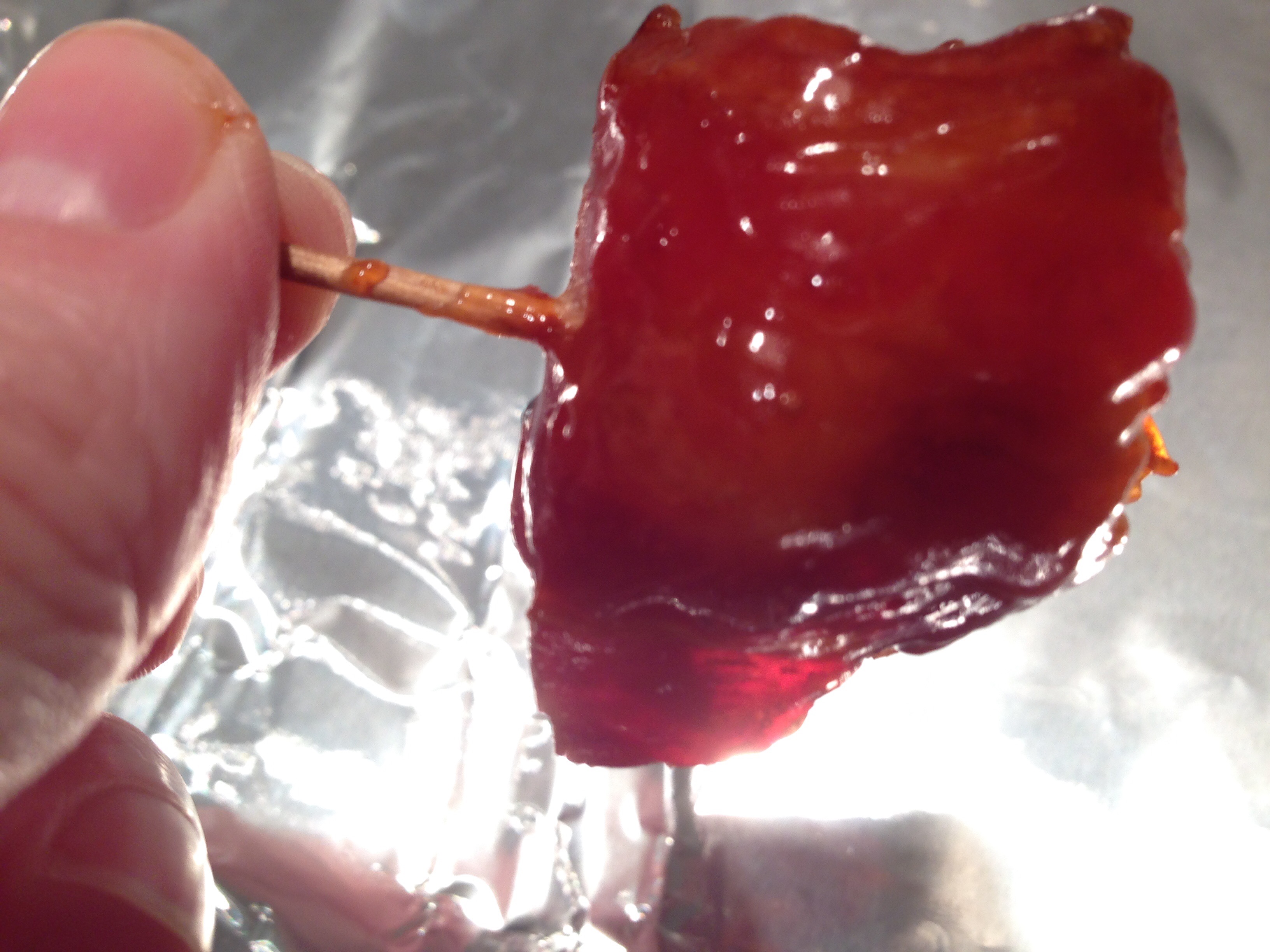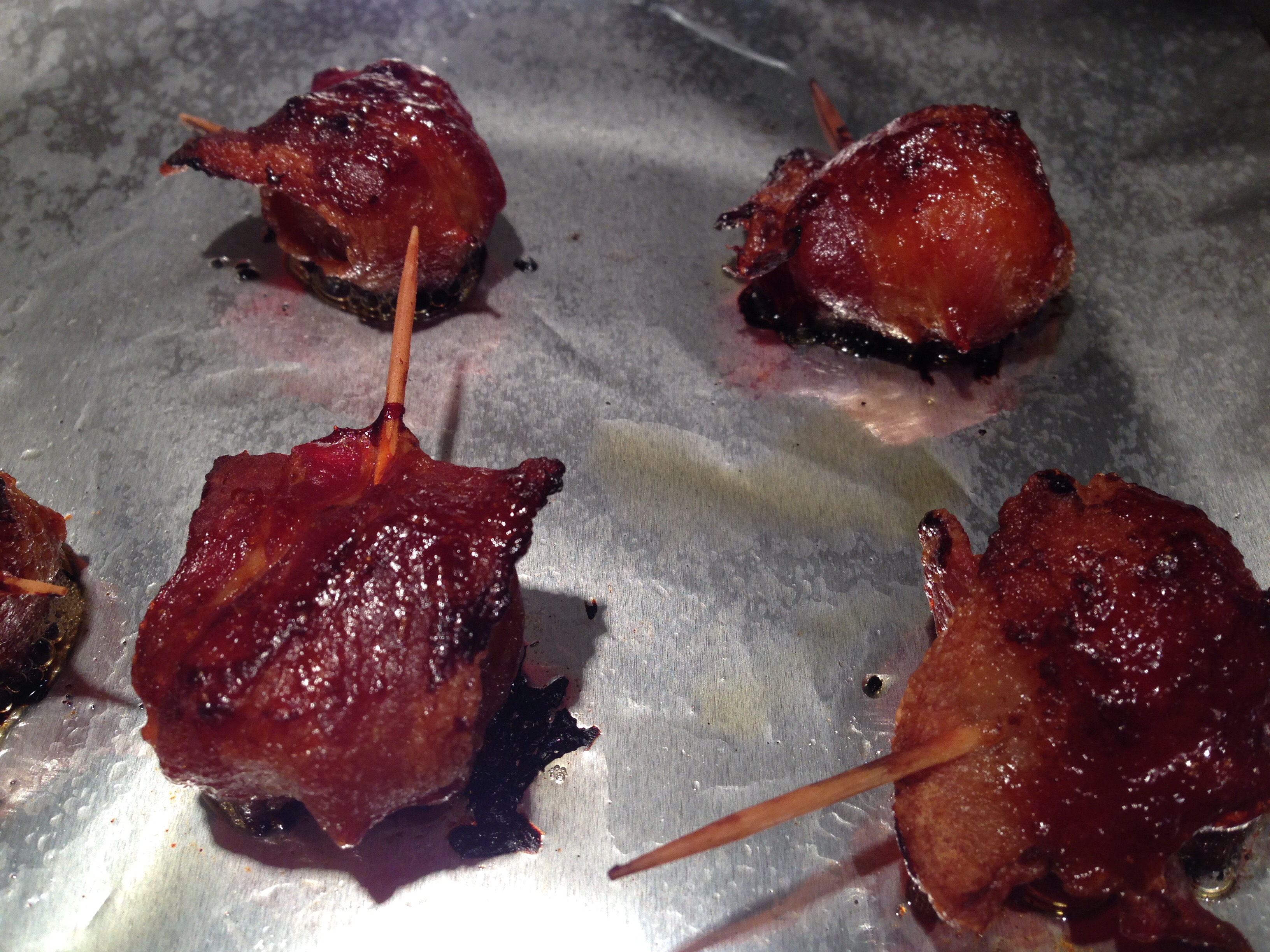 Wrap 1 or 2 water chestnuts in a piece of bacon and secure with a toothpick. Bake in a preheated 425F degree oven for about 25 minutes or until bacon looks done. Brush with glaze and return to oven for 10 minutes. Enjoy!