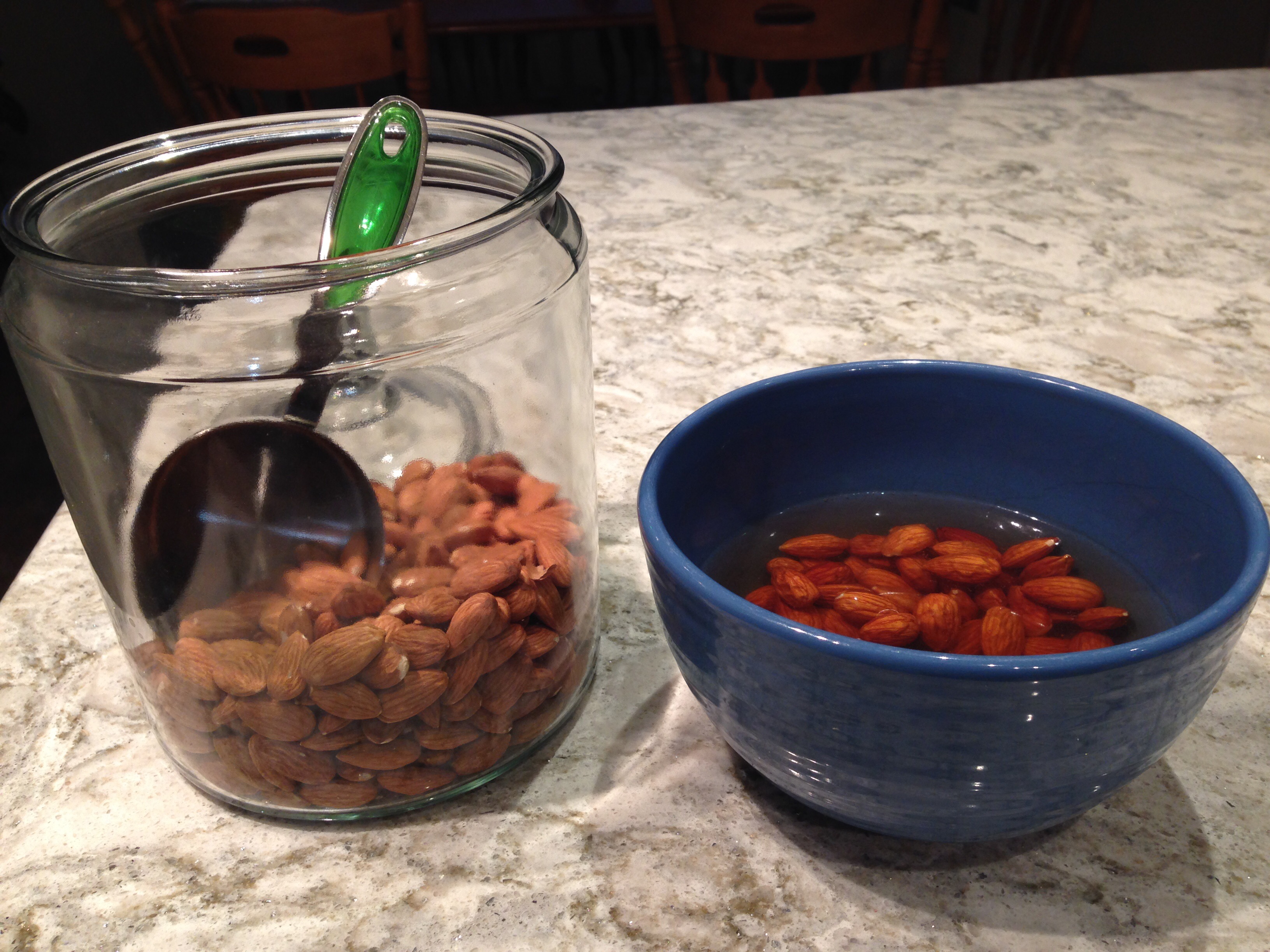 You can buy blanched almonds, but I always have a jar full of almonds and it is simple to blanch them yourself. Just pour boiling water over the almonds and wait 2 minutes. The almonds shoot right out of the skins when you pinch them.