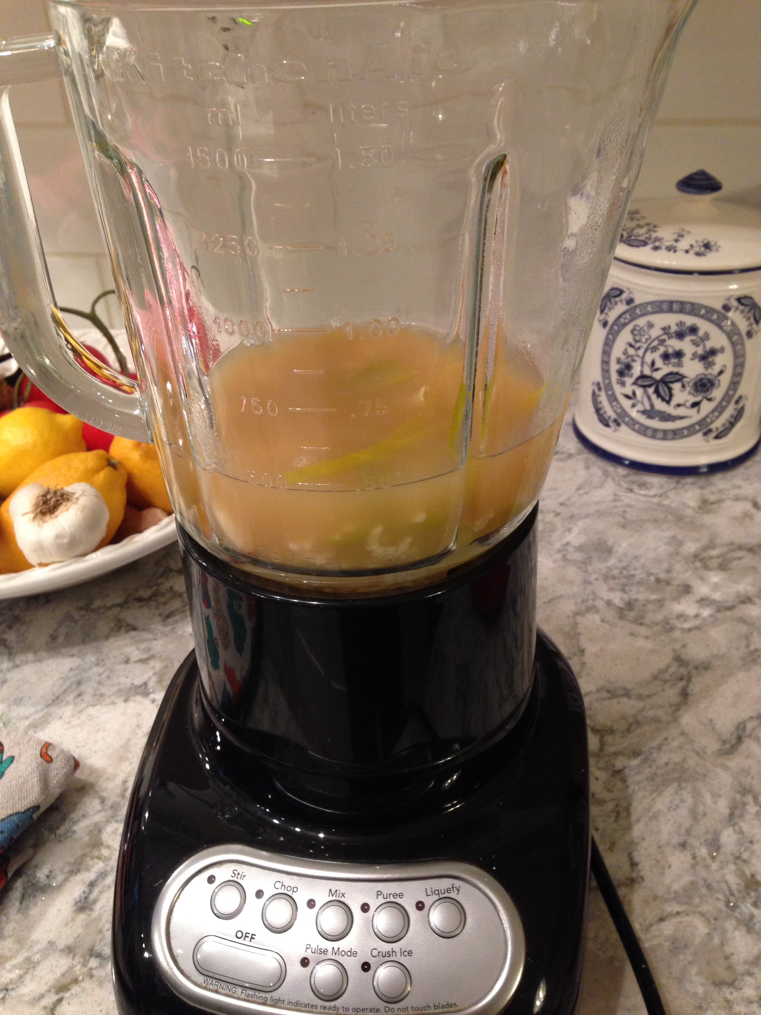 FYI and safety note: if you have never put hot liquid into a blender, be advised that the steaming contents will want to shoot back out at you. My advise is to let it cool first, but if you insist on doing it hot, (like I did this time) put only a small amount in the blender, cover the top with a thick towel, and press down firmly on the lid).