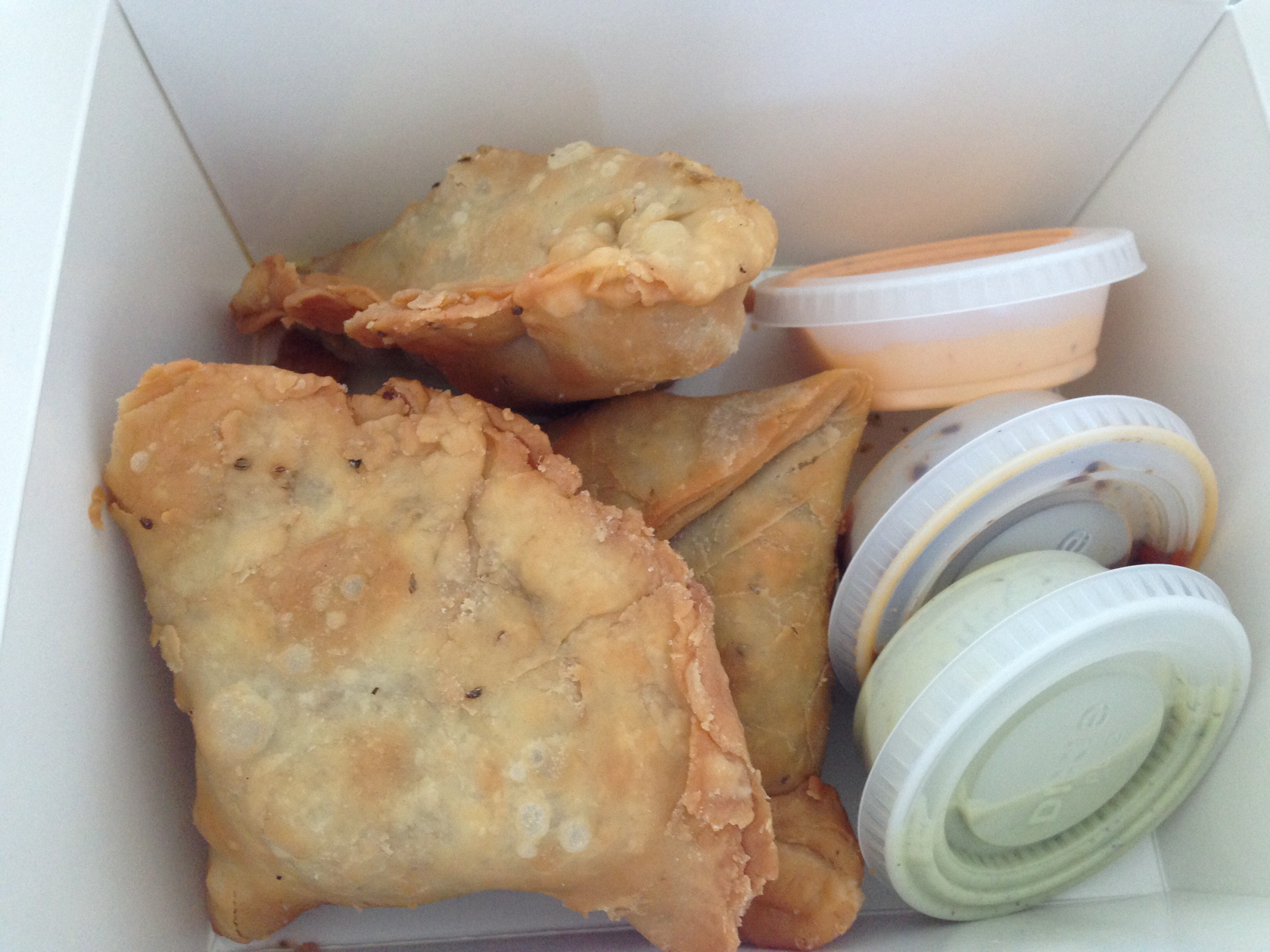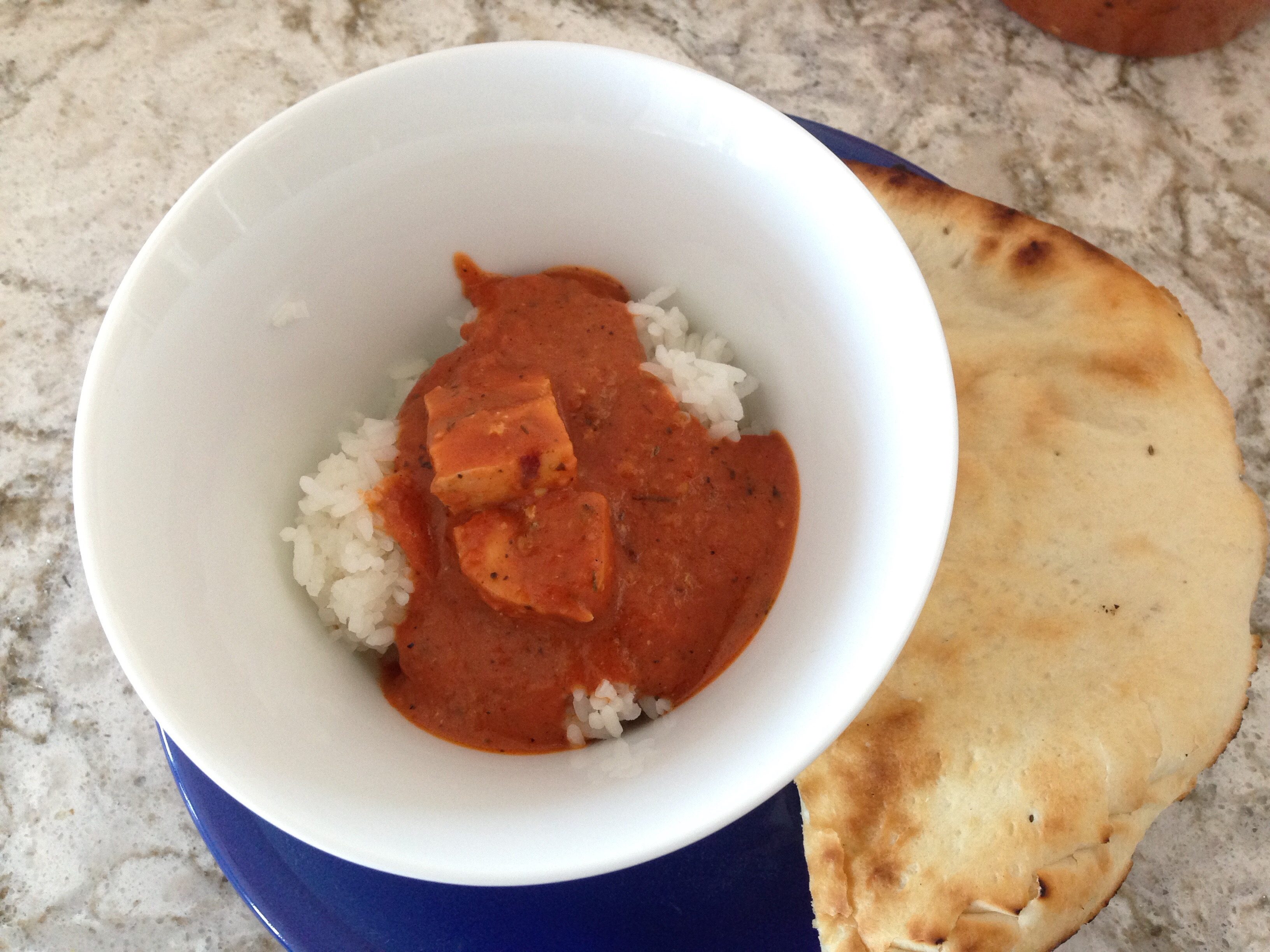 A couple weeks ago, my daughter and I tried take out from a “new-to-us” restaurant in Okotoks called ChaCha John’s. Their food is a combination of traditional Indian flavours fused with western cuisines such as Italian and Greek. The flavours were fresh and interesting, and the sauces were an unexpected flavour treat. We ordered beef samosas and butter chicken to share between us. The samosas were delicious, and the pastry was a short crust pastry style with the warm Indian flavours in the filling. Three complimentary sauces were included.