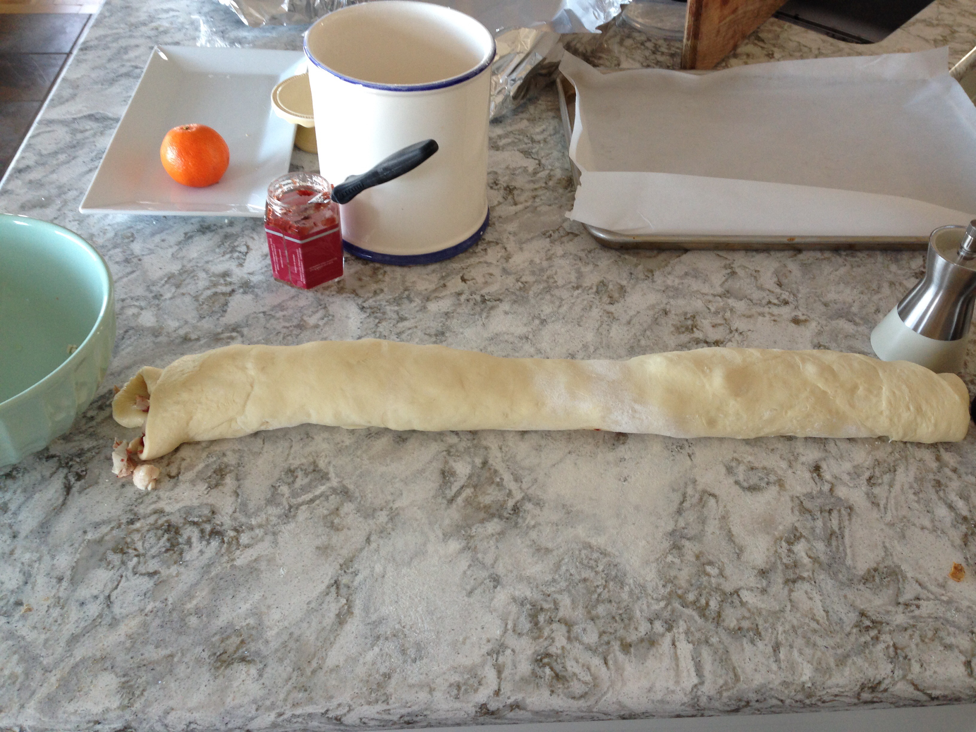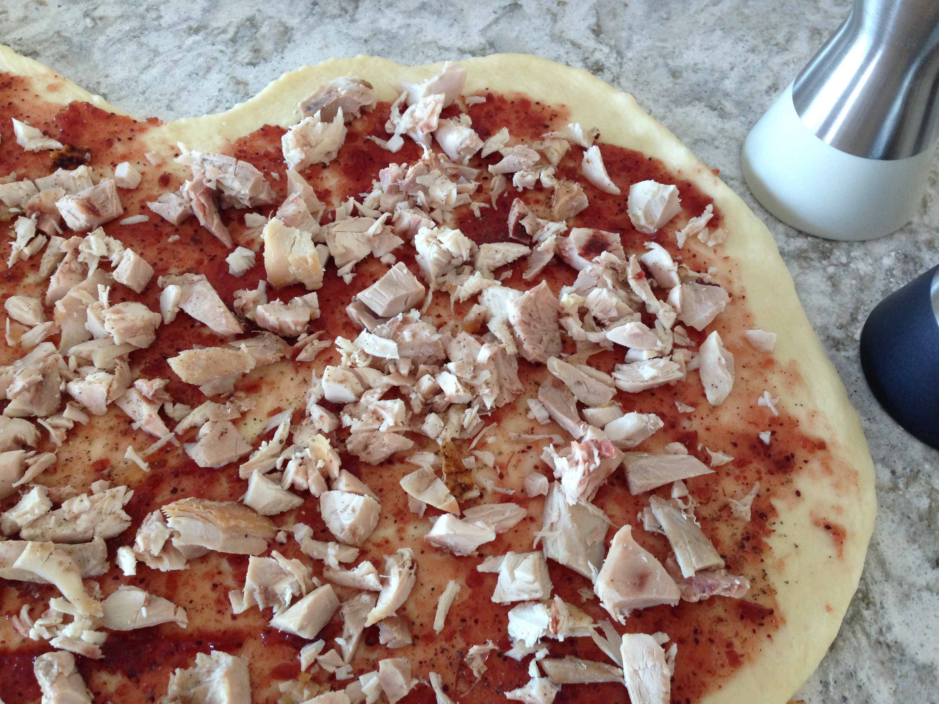 Add the ingredients in order and set bread machine to dough option. When the cycle is complete, roll the dough into a rectangle, about 1 cm thick. Spread 1/2 cup of cranberry sauce over the dough. Top with an even layer of the chicken.
