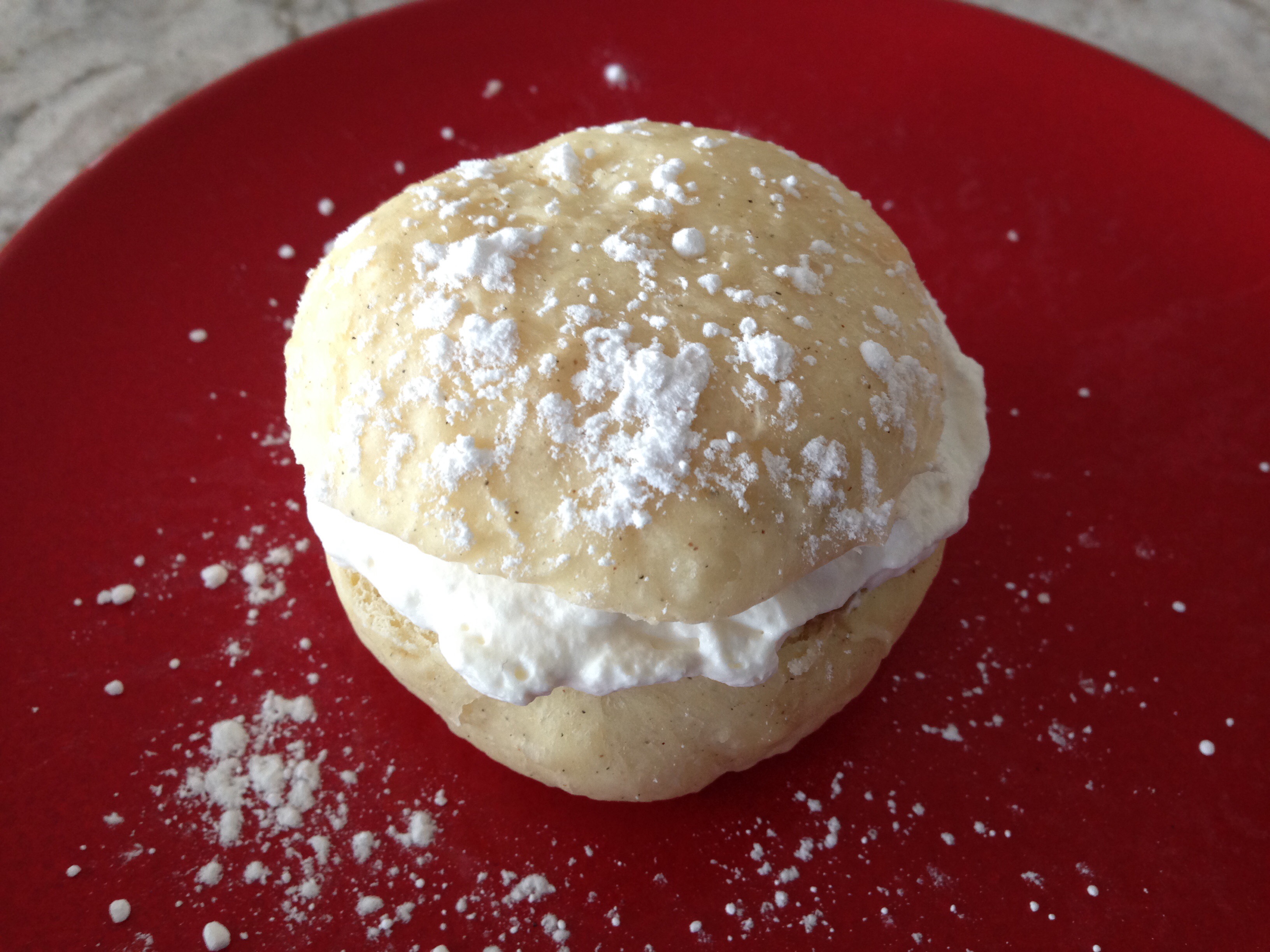 When I first saw these buns on The Culinary Jumble I thought they might be cream puffs, but found they are a Swedish Shrove Tuesday bun flavoured with cardamom and filled with almond paste and whipped cream! What is not to like? I also added 1/2 tsp. of natural almond flavouring to bring forward the almond flavour.
