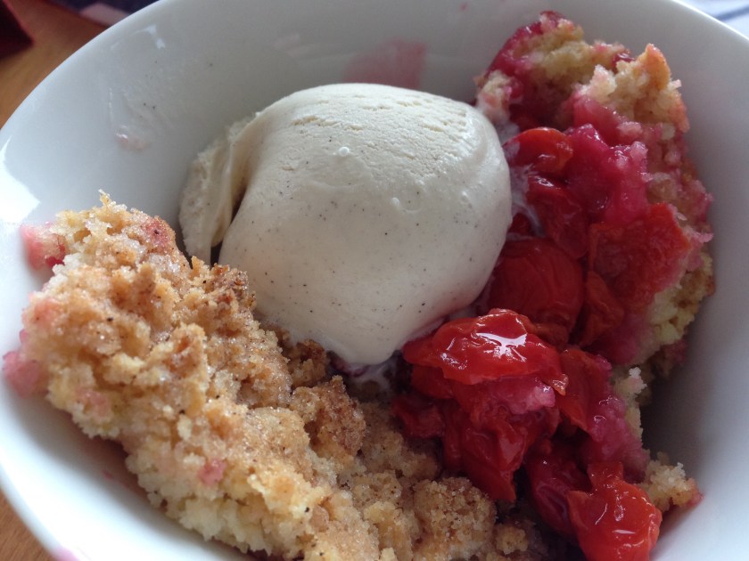 Because the cherries are really quite tart, I like to serve this with ice cream.