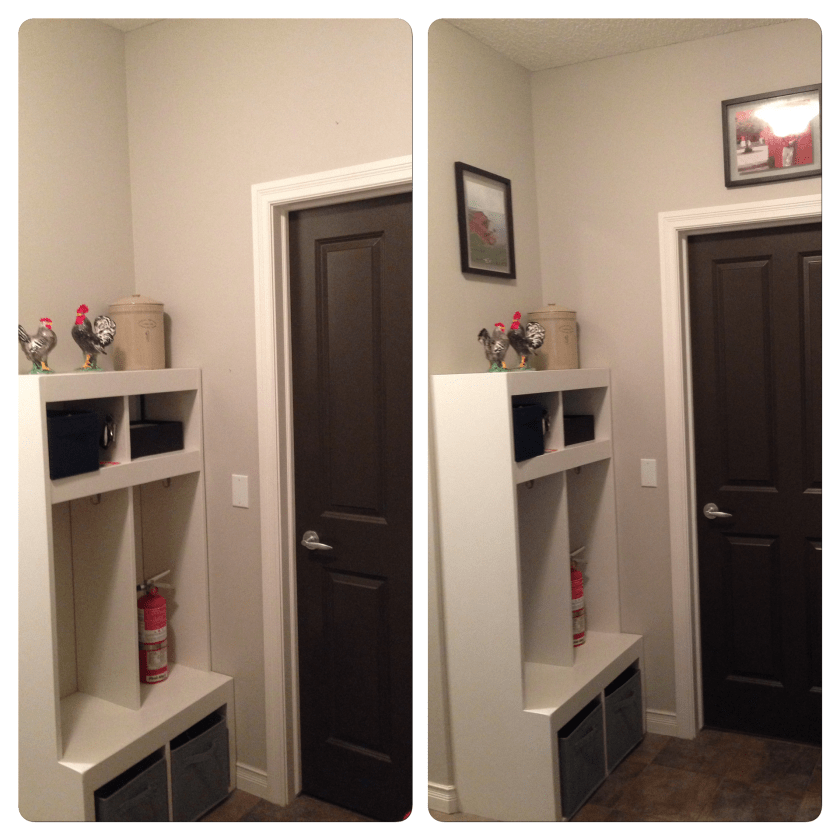 Although our back entrance is functional and has good storage, it occurred to me this week that it is a very Boring Space. Not much by way of “welcome home”.