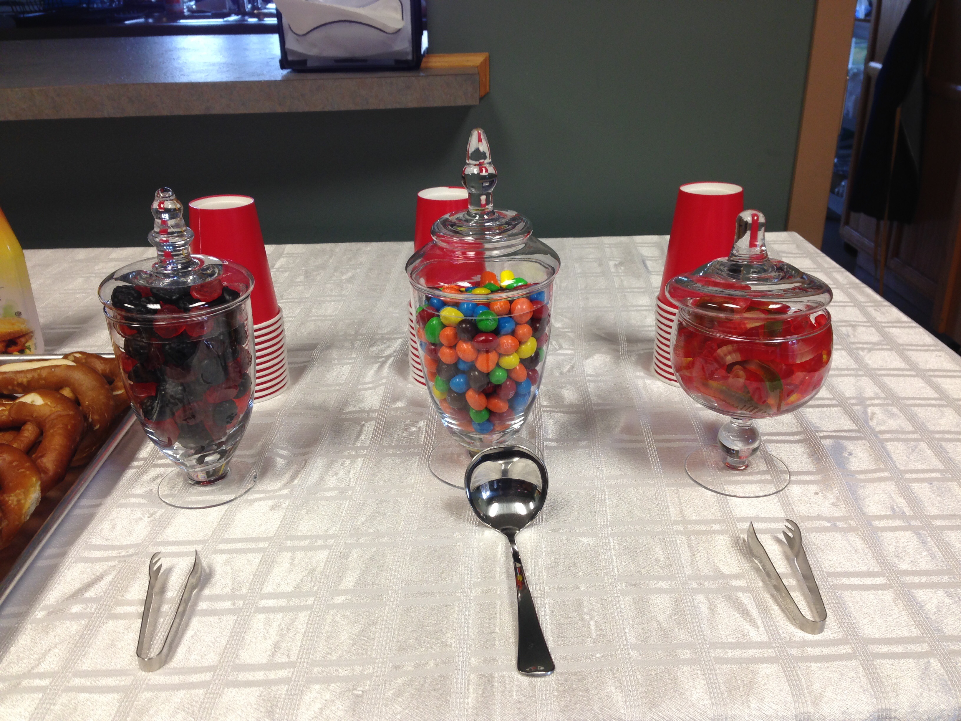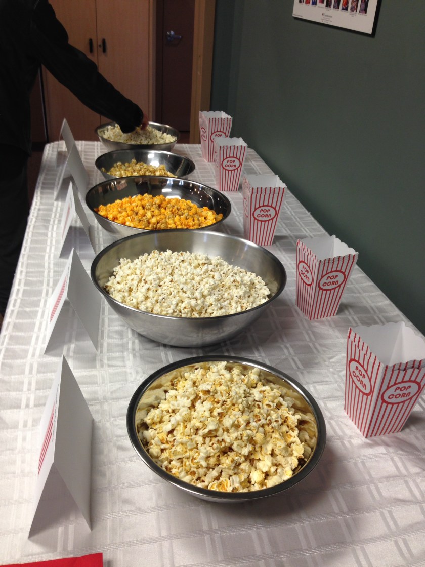 In my view of the world, the snack array is as important as the choice of the film. 😉 We had several different flavours of popcorn, pop, soft German pretzels with mustard, peanut M&M’s, and some gummy candies. It doesn’t hurt if you throw in a couple foods related to the movie to see who is paying attention… We watched the movie “Luther”, hence the German pretzels. Less obvious, but more amusing to me, was the gummy worm connection (The Diet of Worms, 1521). Haha. I cannot resist a such an easy pun.